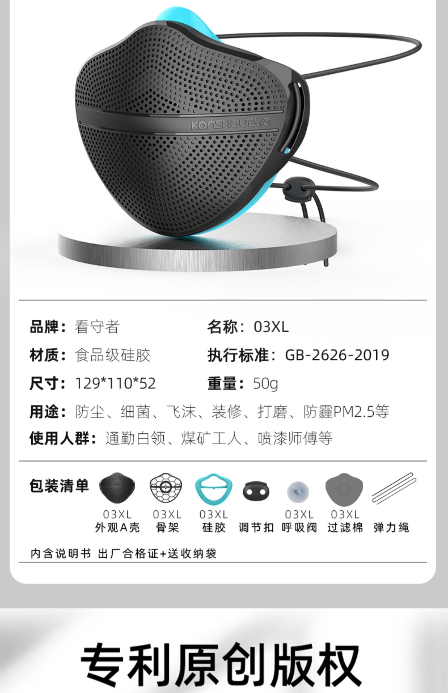03XL 산업 먼지 마스크 광택 탄광 장식 입과 코 분리 세척 가능한 보호 마스크스토어 가기