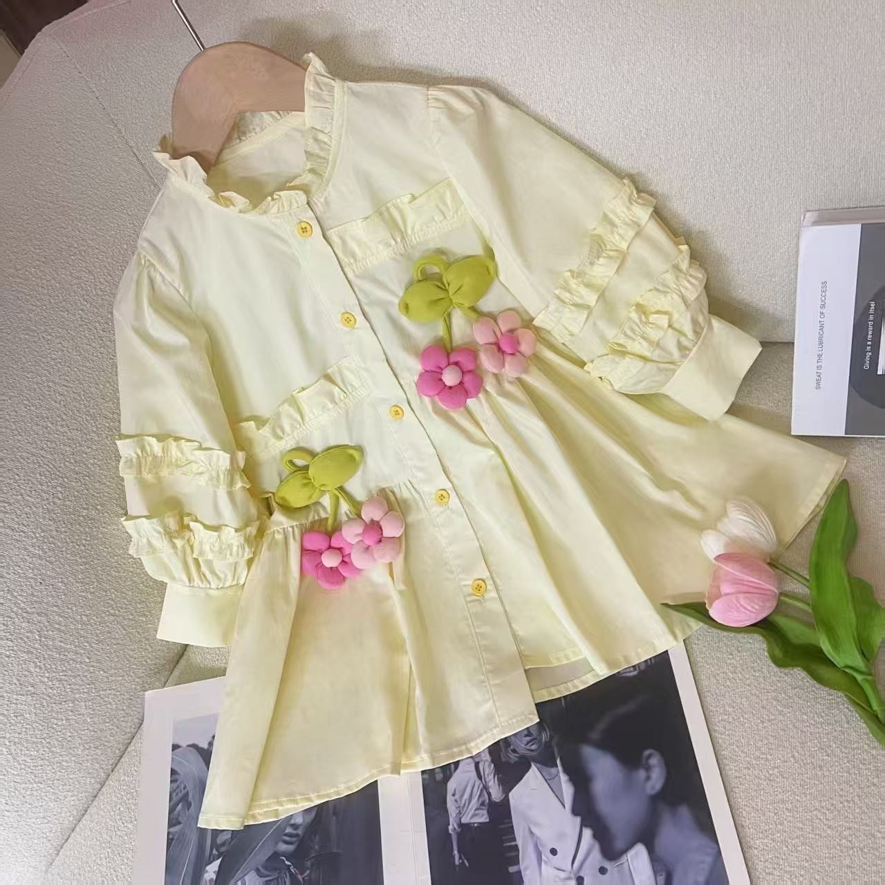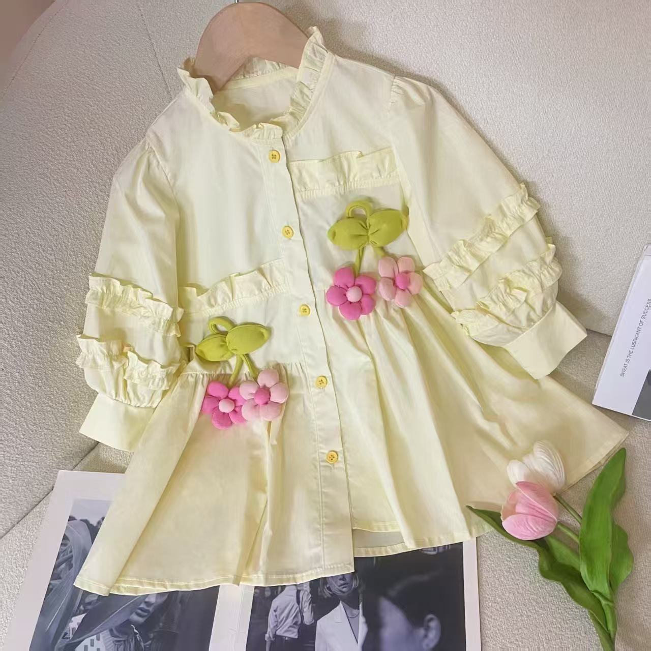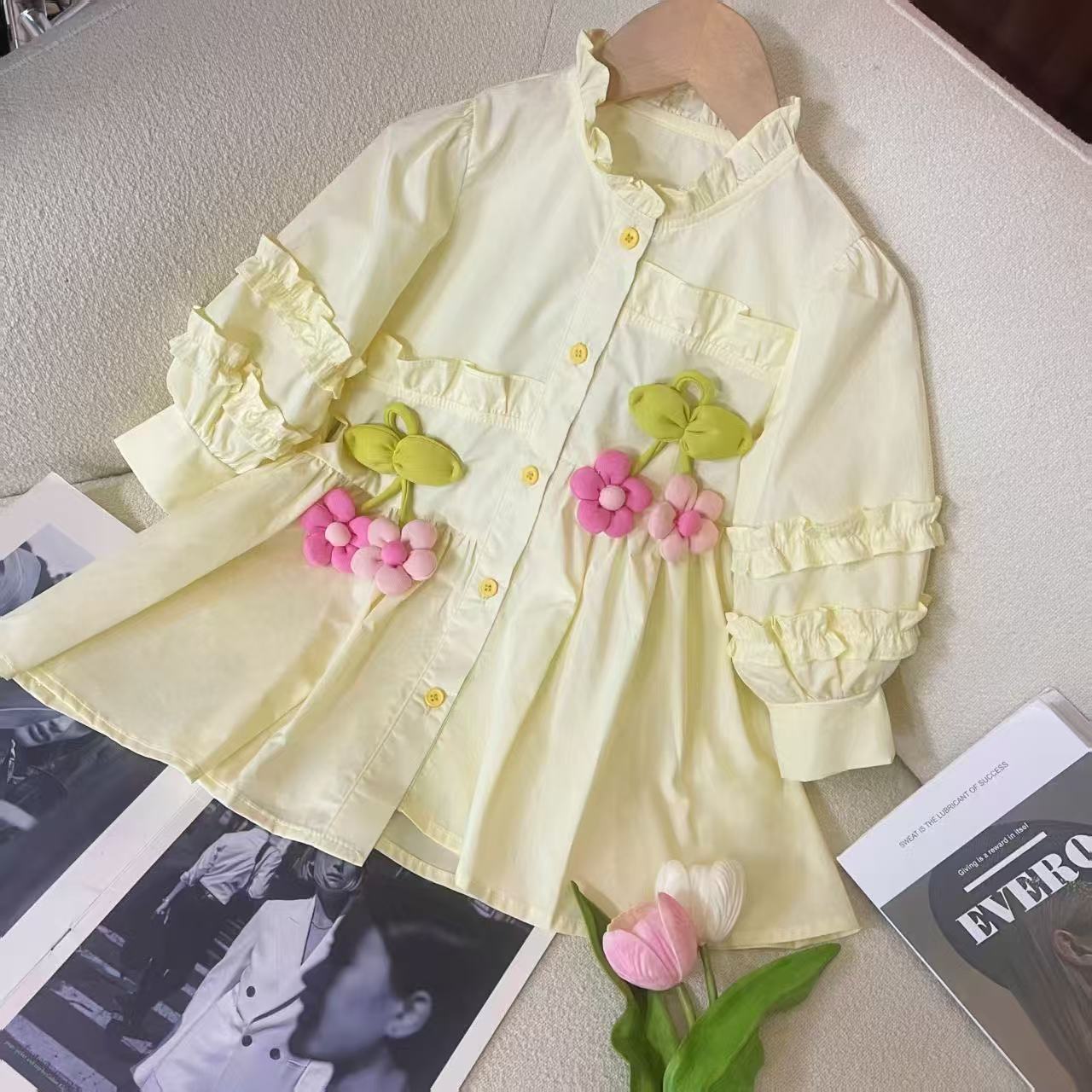 봄과 가을 2025 새로운 한국 스타일 소녀 셔츠 원피스 소녀의 3 차원 해바라기 긴 소매 원피스 트렌디스토어 가기
