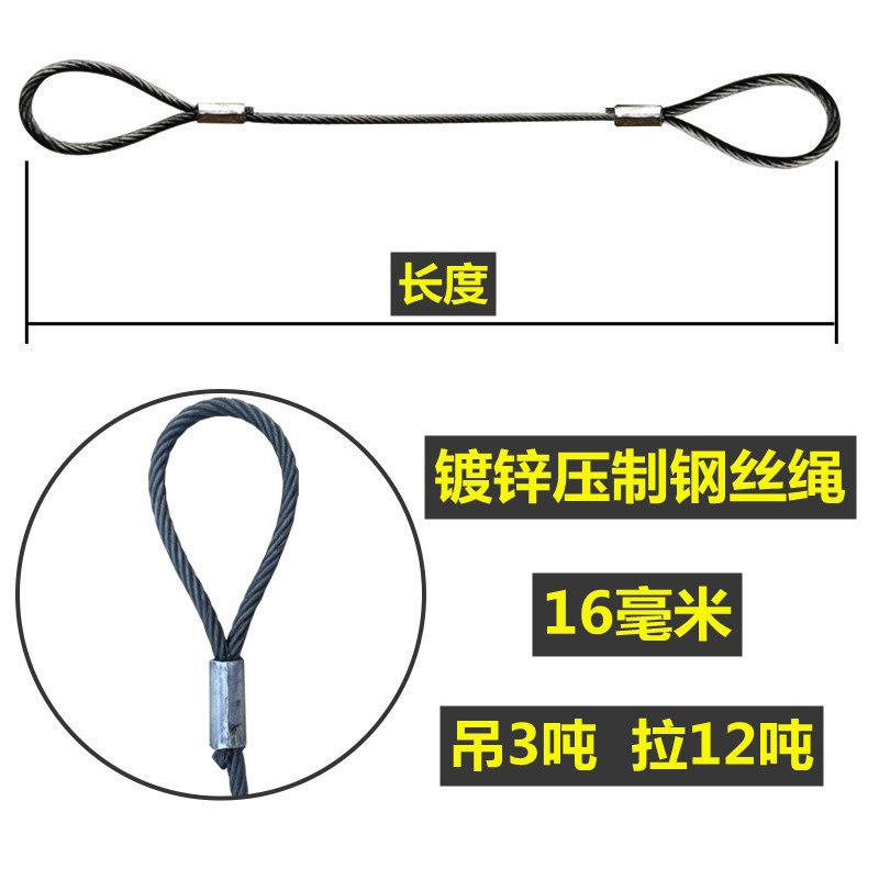 • 압축 아연 도금 12mm 3m 강철 와이어 로프