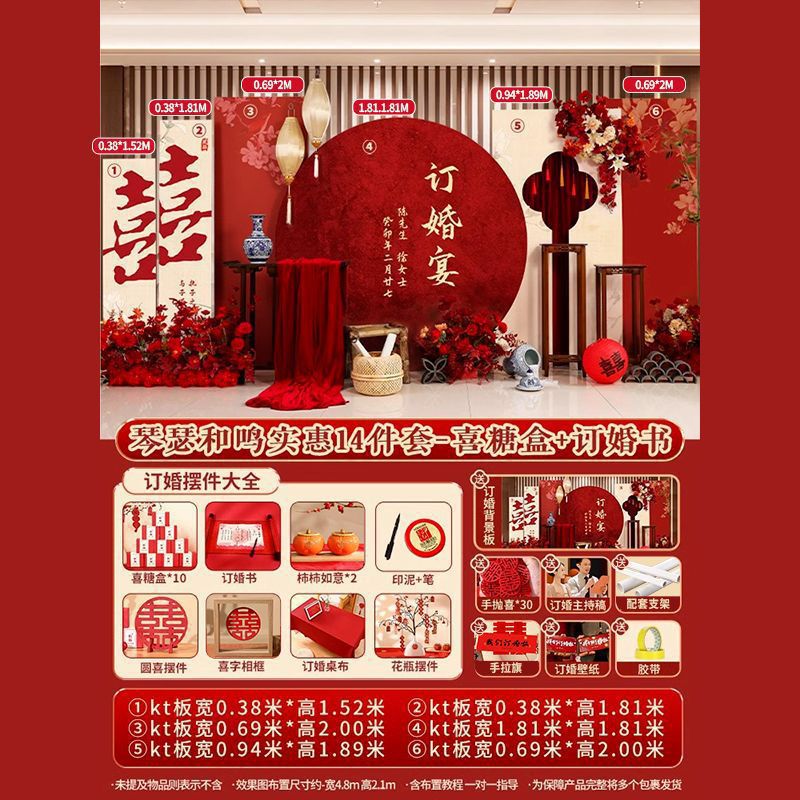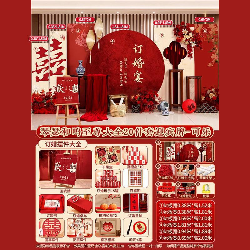 새로운 중국 약혼 배경 보드 약혼 연회 장식 웨딩 Kt 보드 레이아웃 장식품 세트스토어 가기