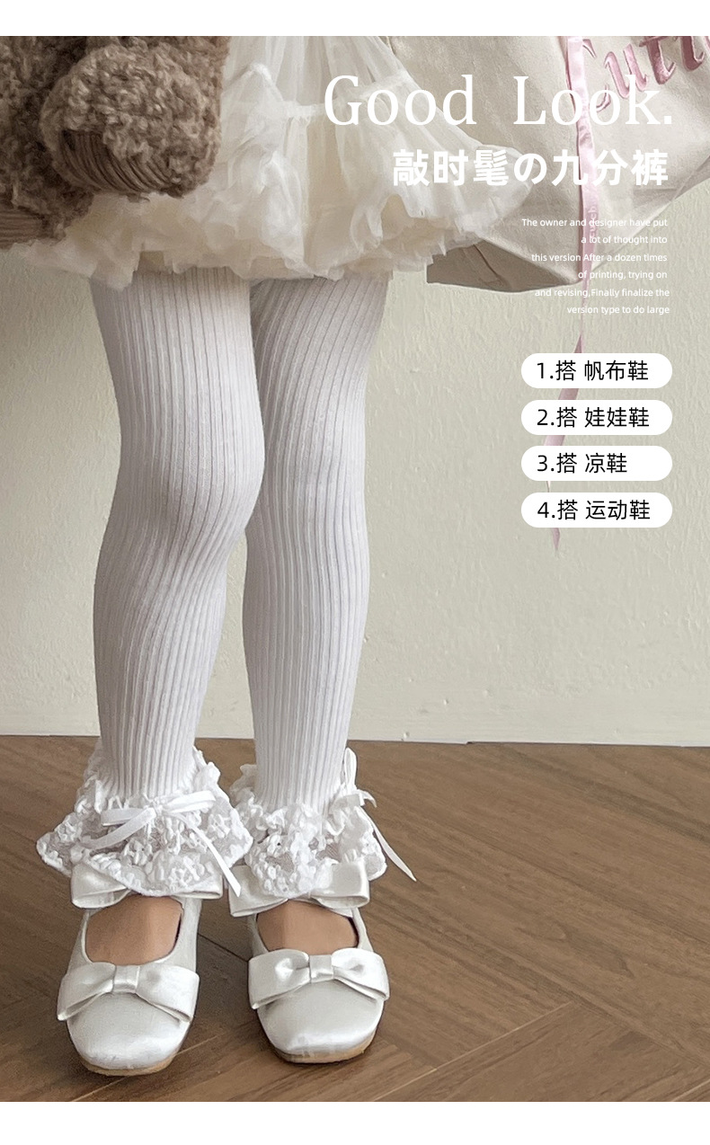 긴 원사 레이스 나비 아기 레깅스 봄과 가을 얇은 외부 여성용 서양식 아기 흰색 발목 양말 착용스토어 가기