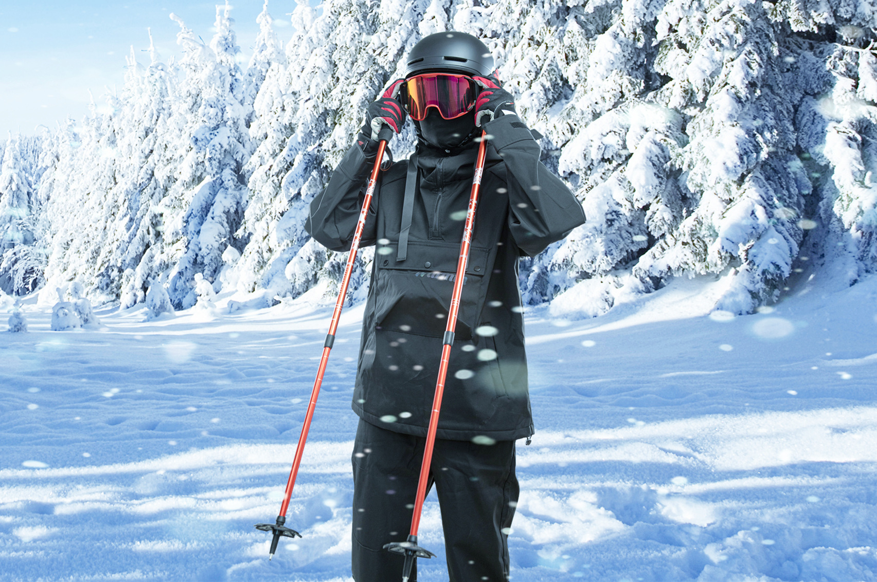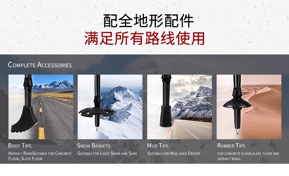 配备两种雪托,大雪托应对粉雪厚的野雪区域,小雪托适用于滑雪场。