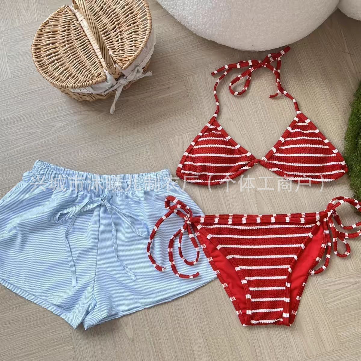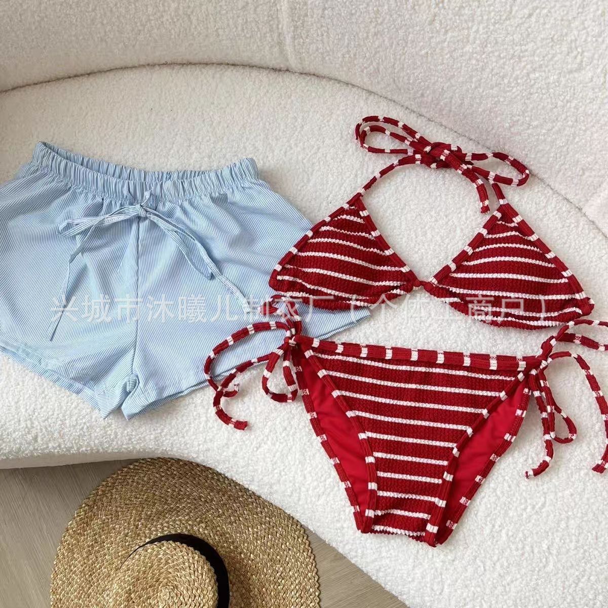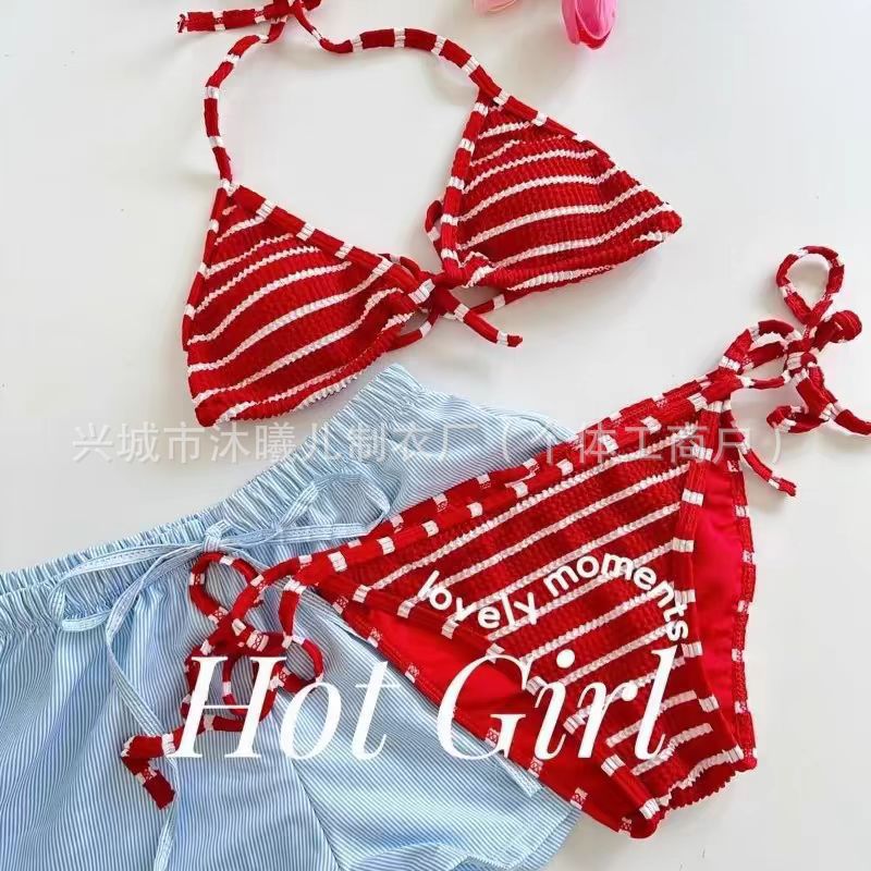 공장 도매 태국 홀리데이 스플릿 비키니 섹시 레드 스파이스 소녀 스트라이프 루즈 스트랩 스파 비치 수영복스토어 가기