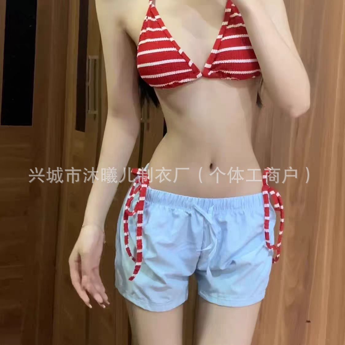 공장 도매 태국 홀리데이 스플릿 비키니 섹시 레드 스파이스 소녀 스트라이프 루즈 스트랩 스파 비치 수영복
