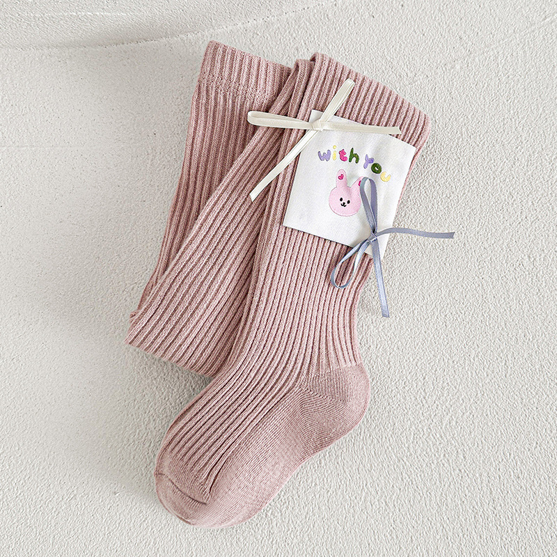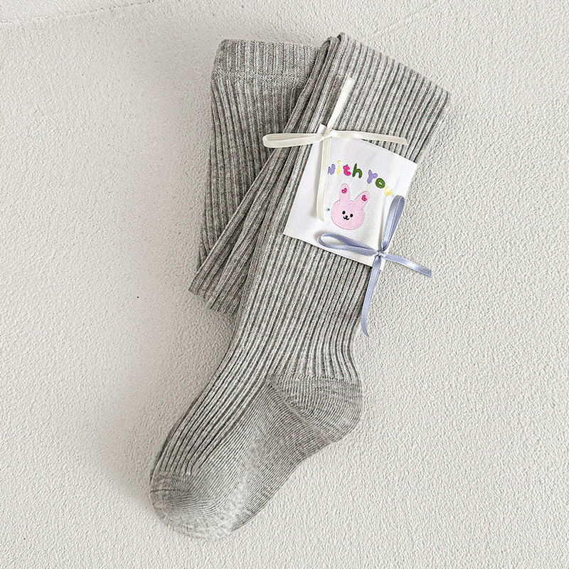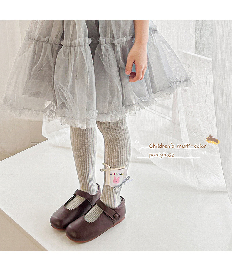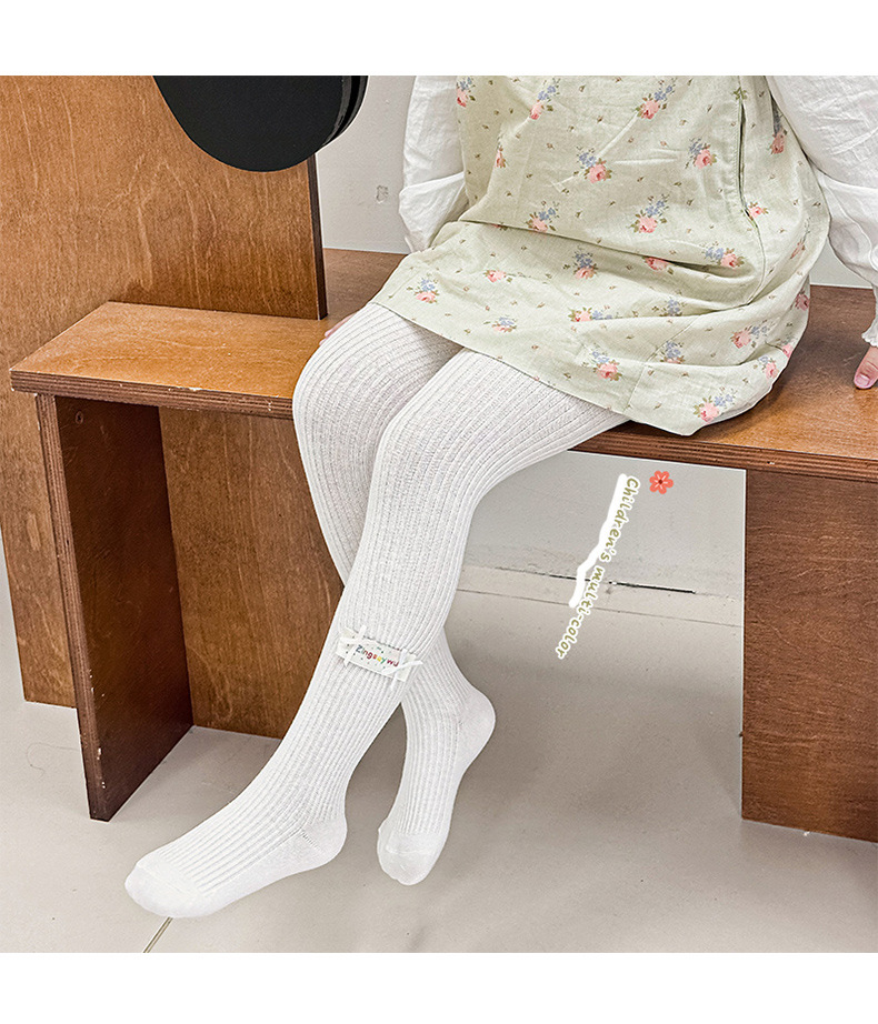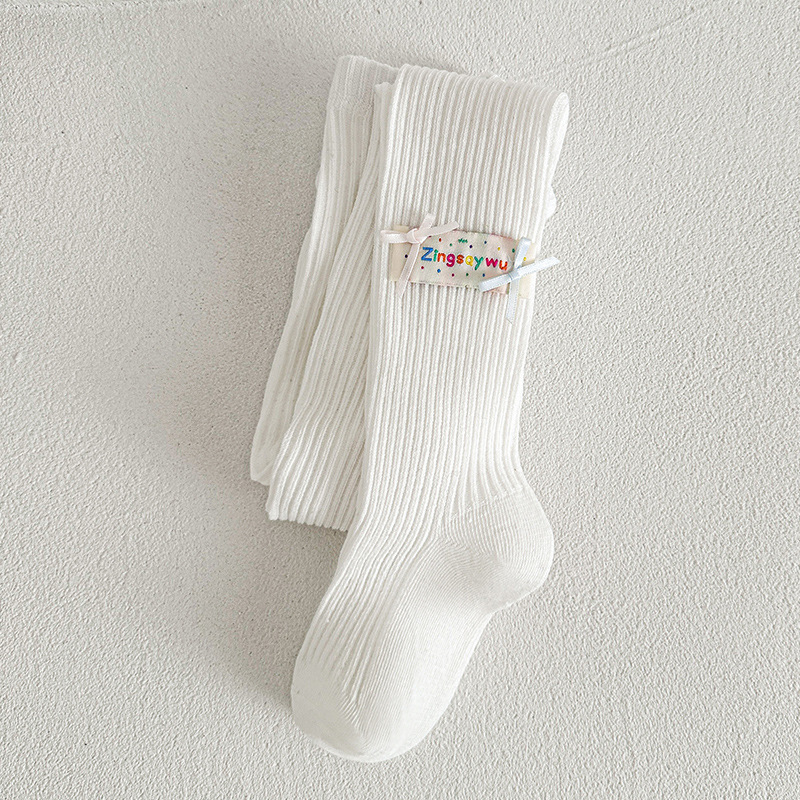 봄 2025 새로운 어린이 양말 만화 헝겊 라벨 소녀 팬티스타킹 중소 어린이 아기 외부 착용베이스 양말