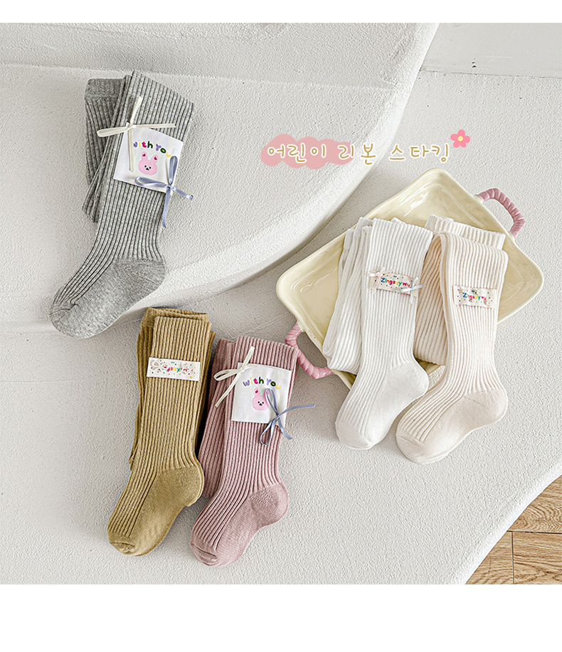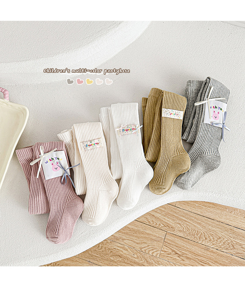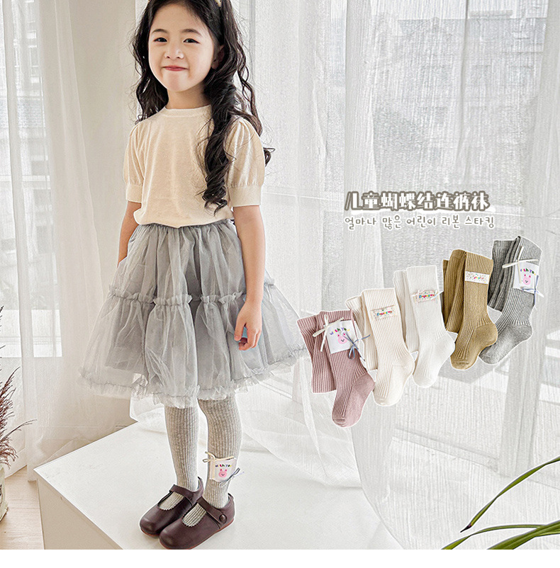 봄 2025 새로운 어린이 양말 만화 헝겊 라벨 소녀 팬티스타킹 중소 어린이 아기 외부 착용베이스 양말스토어 가기