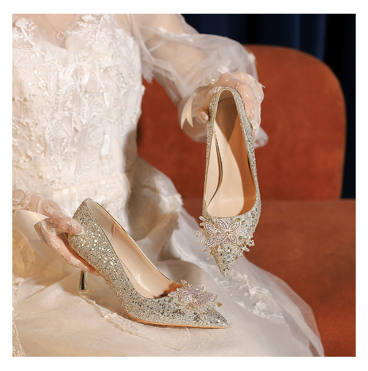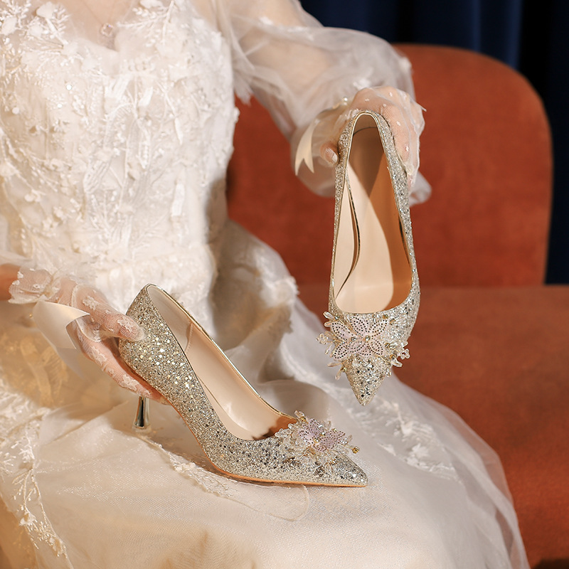 316-A199 프랑스 웨딩 신발 웨딩 신부 신발 하이힐 플러스 사이즈 뚱뚱한 발 넓은 발 샴페인 신부 신발스토어 가기