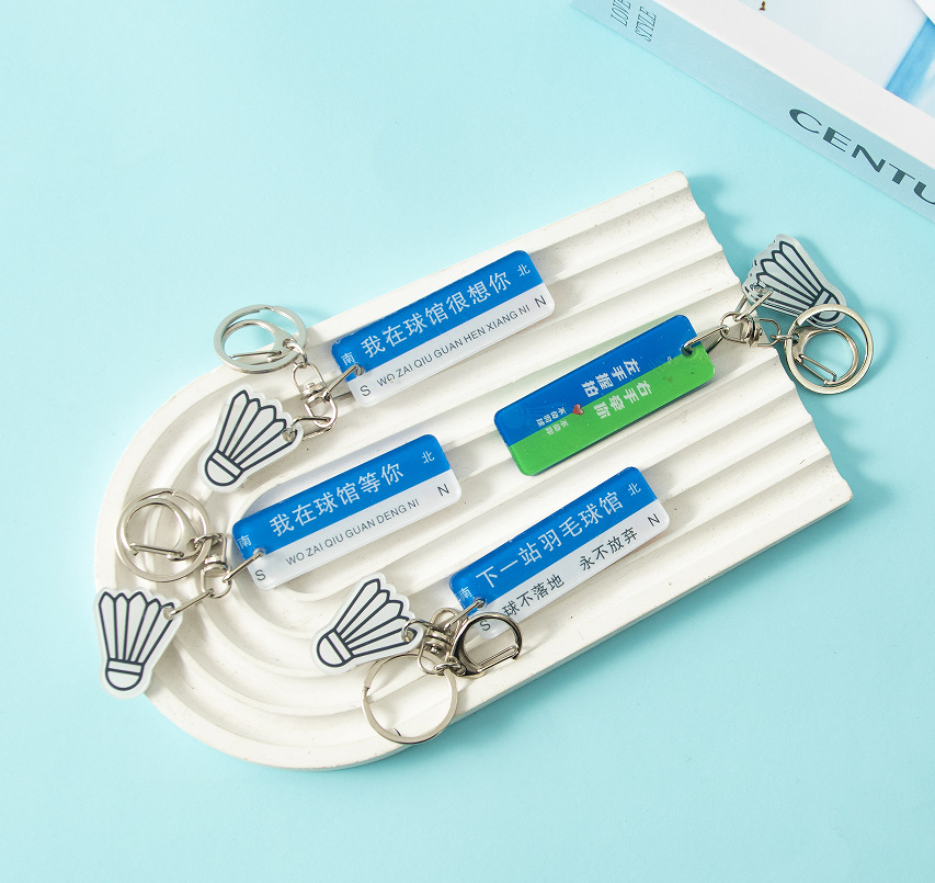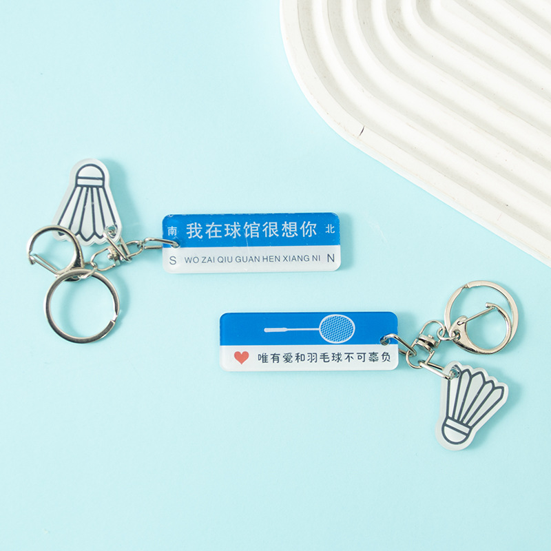 그물 레드 아크릴 귀여운 배드민턴 키 체인 학교 클럽 선물 기념품 경기장에서 기다리고 있습니다.스토어 가기