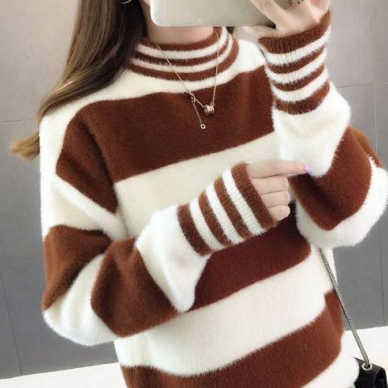 가을 · 겨울 모조 반 높이 목 두꺼운 따뜻한 풀오버 스웨터 여학생 한국식 루즈스트라이프베이스 셔츠
