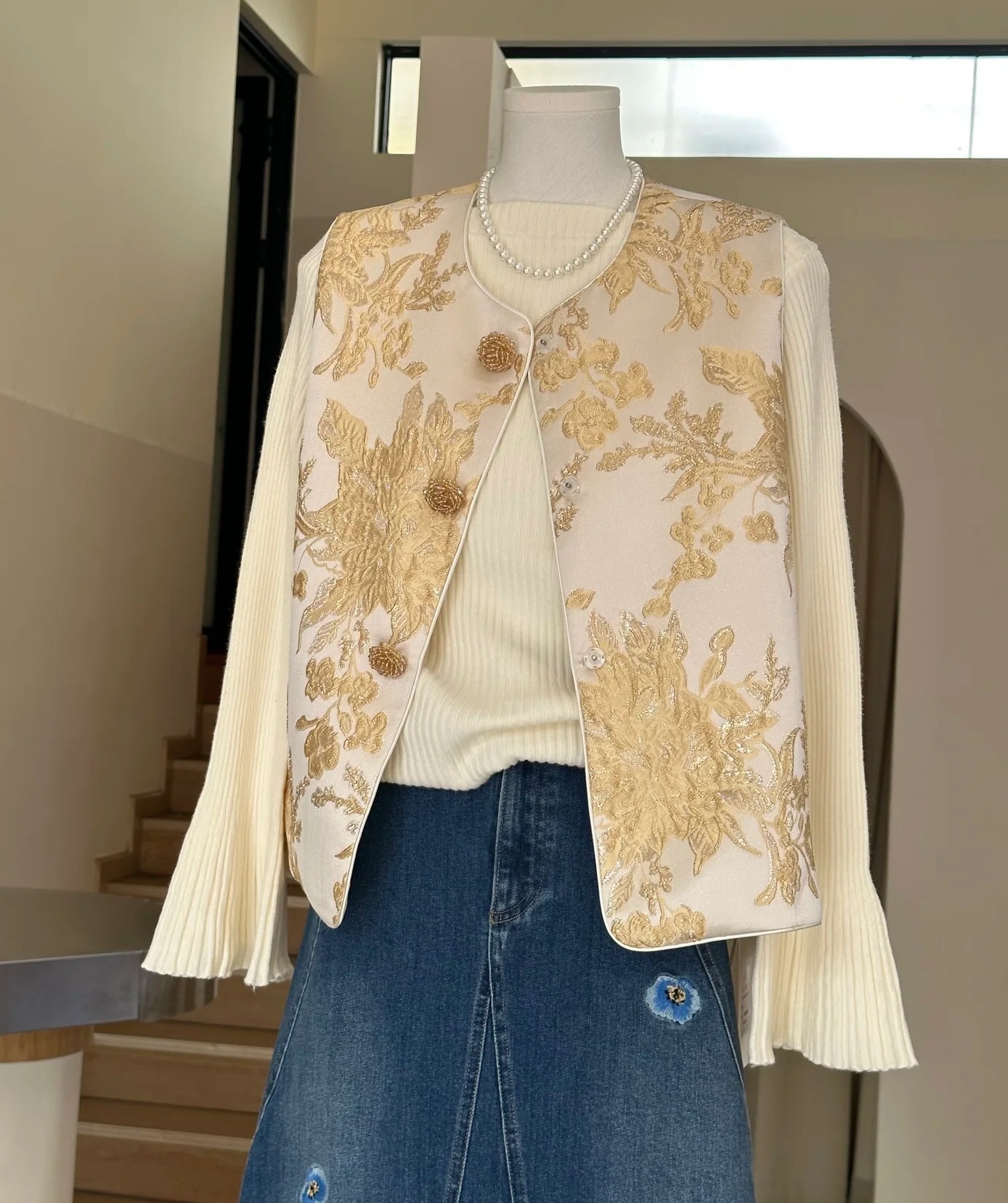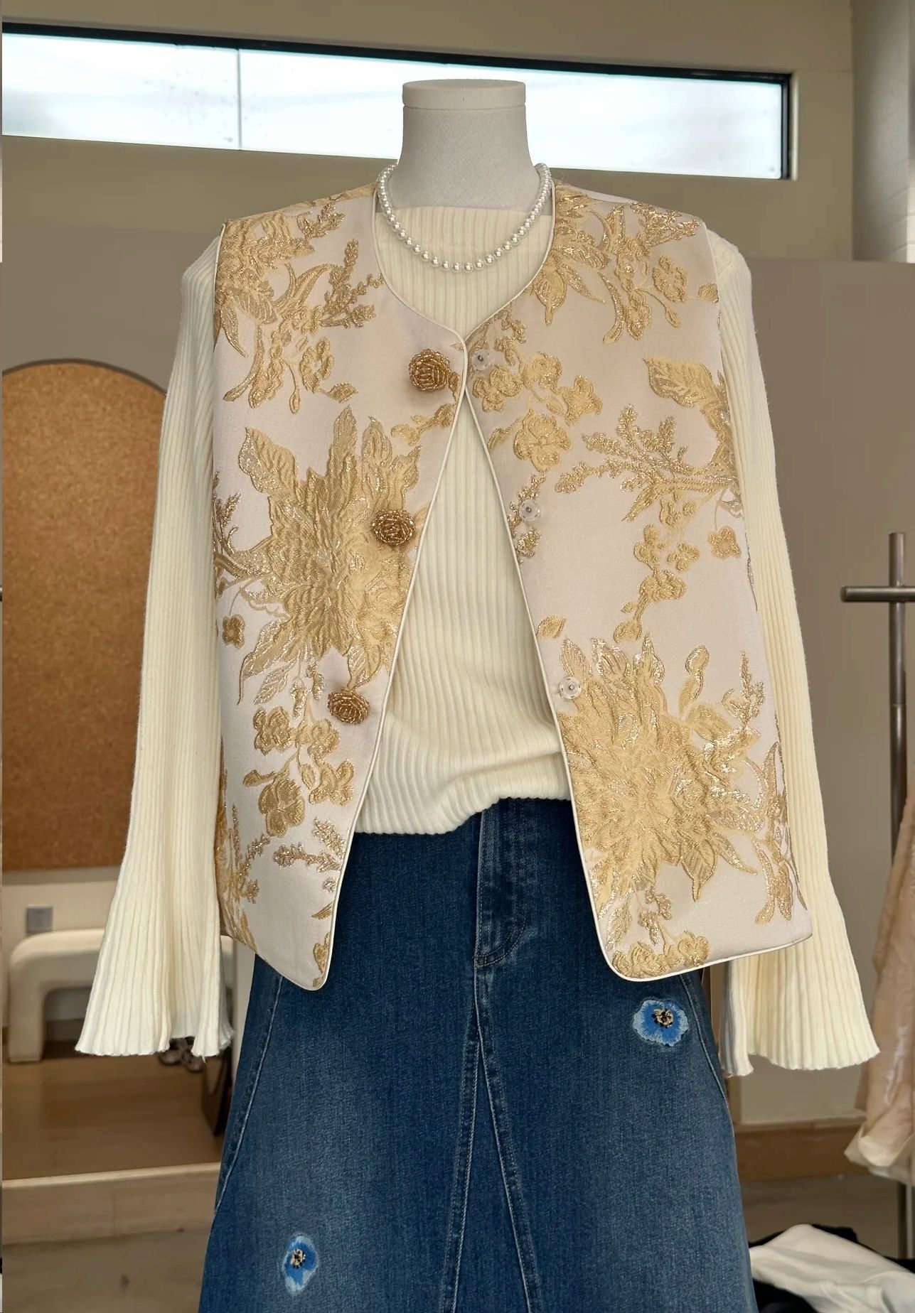 봄 2025 새로운 여성복 라이트 Guofeng 자수 패션 중공업 디자인 센스 패션 대기 느슨한 조끼 재킷스토어 가기