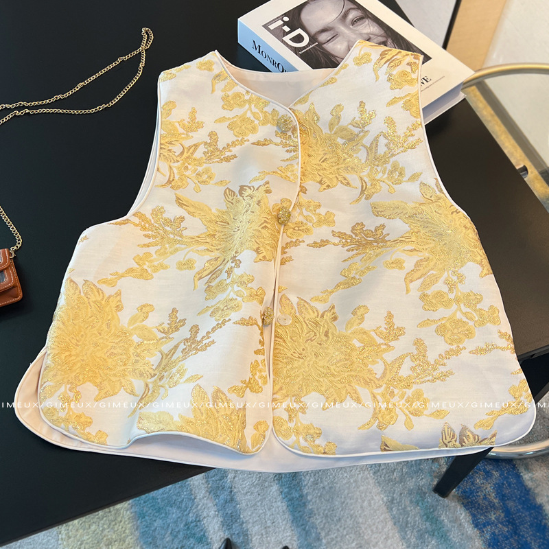 봄 2025 새로운 여성복 라이트 Guofeng 자수 패션 중공업 디자인 센스 패션 대기 느슨한 조끼 재킷