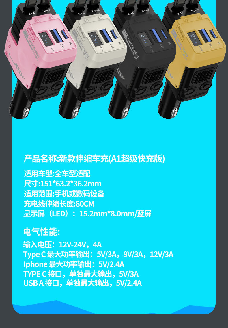 자동차 개폐식 충전기 120W 초고속 충전 유형 4 대 1 플래시 담배 라이터 플러그 자동차 유니버설스토어 가기