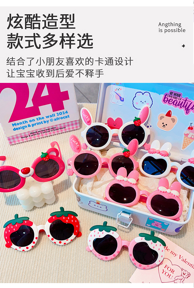 새로운 만화 어린이 행운의 고양이 안경 소년 선글라스 소녀 만화 도매 혼합 부드러운 프레임 선글라스스토어 가기