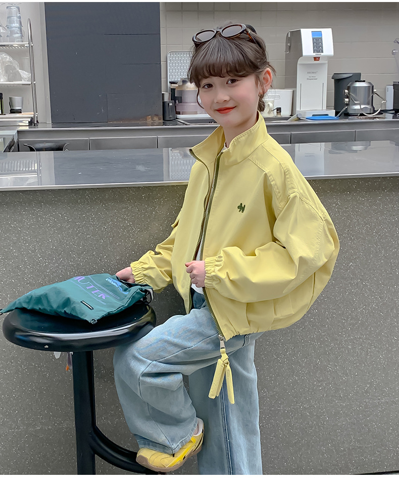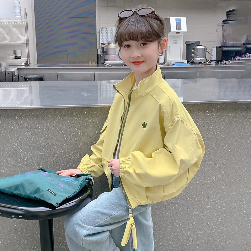소녀 코트 2025 봄 새로운 어린이 한국 스타일 서양식 봄 재킷 큰 어린이 스포츠 유행 탑