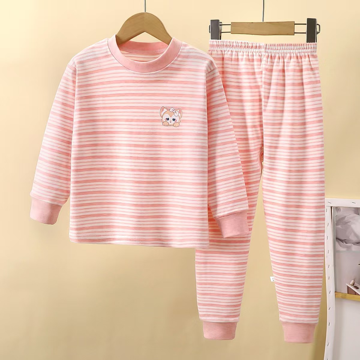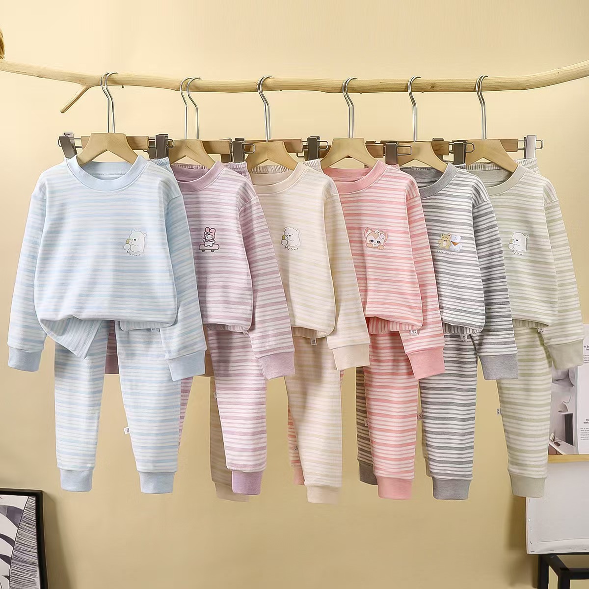 Cuhk 어린이 가을과 겨울 줄무늬 긴 소매 속옷 세트 아기 편안한 가정 옷 어린이 화려한 면 가을 옷 가을 바지 도매
