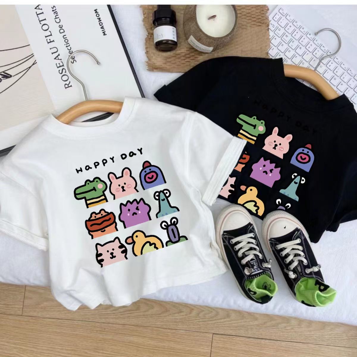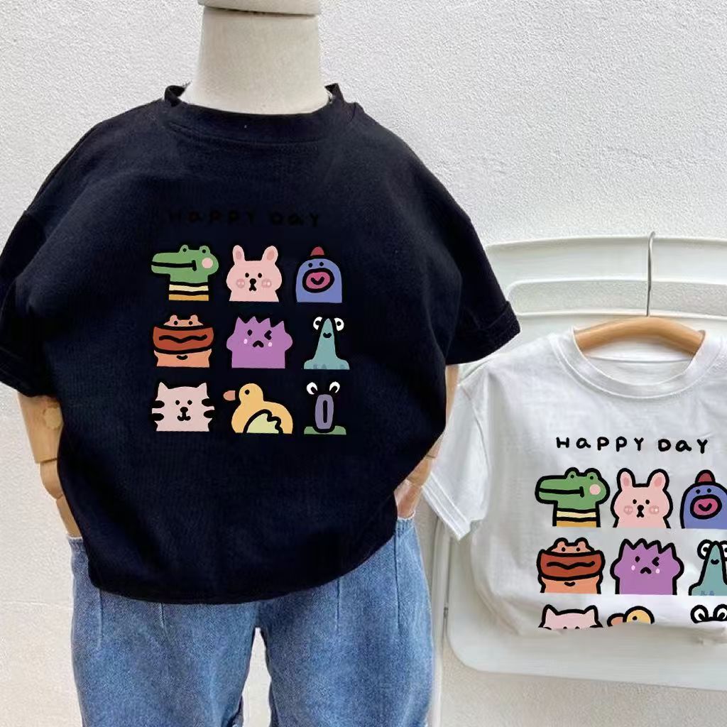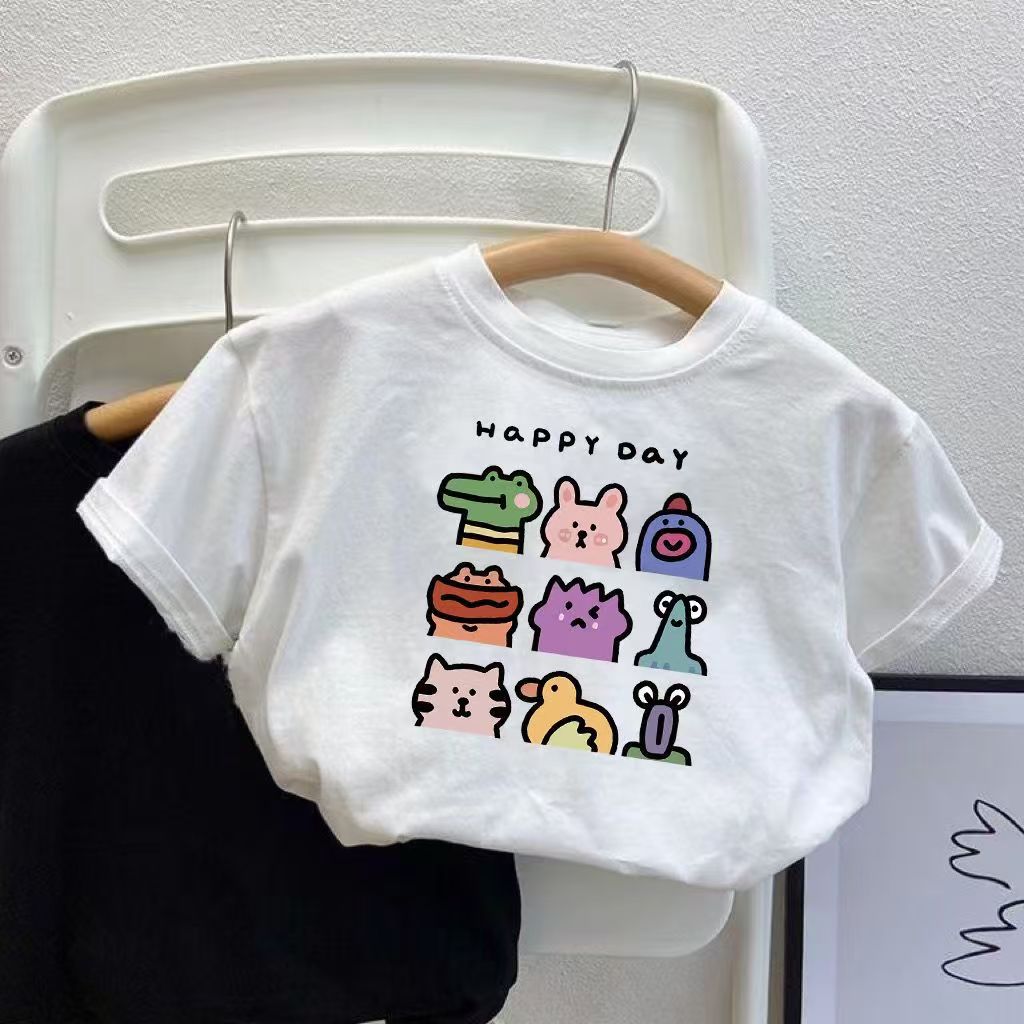 2025 새로운 멀티 피겨 여름 어린이 새로운 만화 반팔 느슨한 소녀 만화 인쇄 캐주얼 어린이 탑스토어 가기