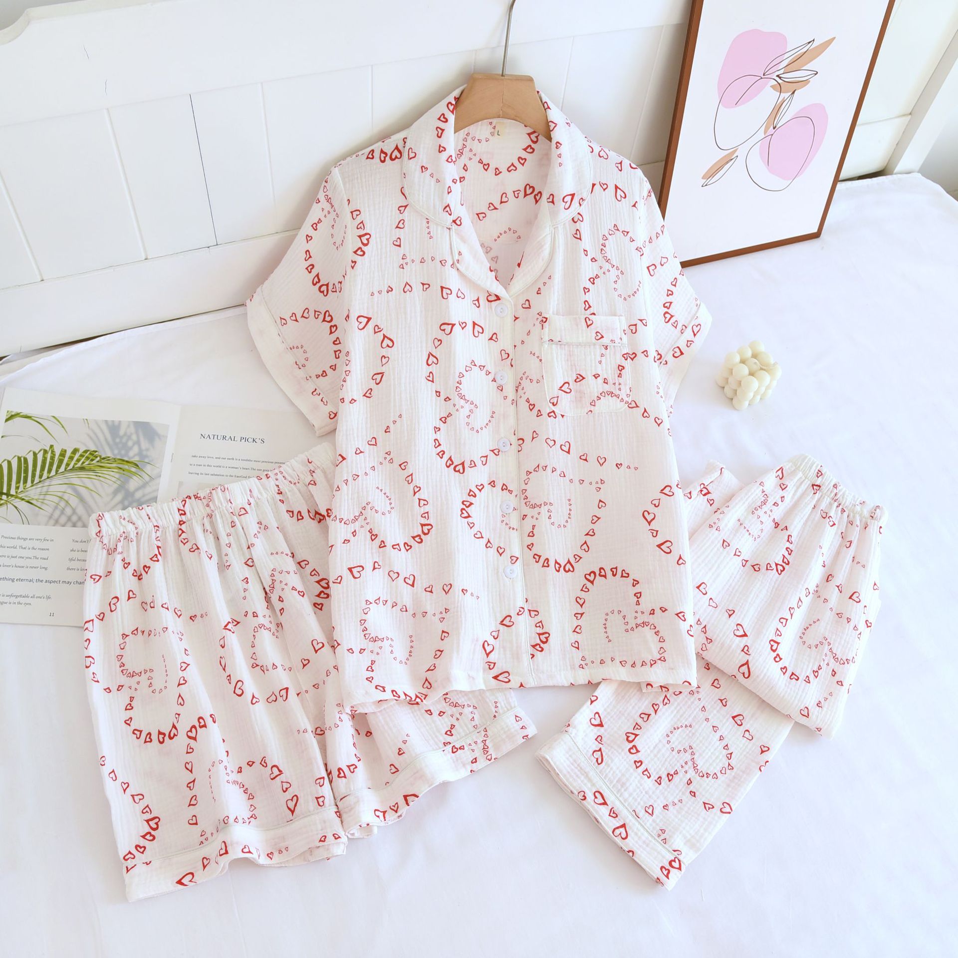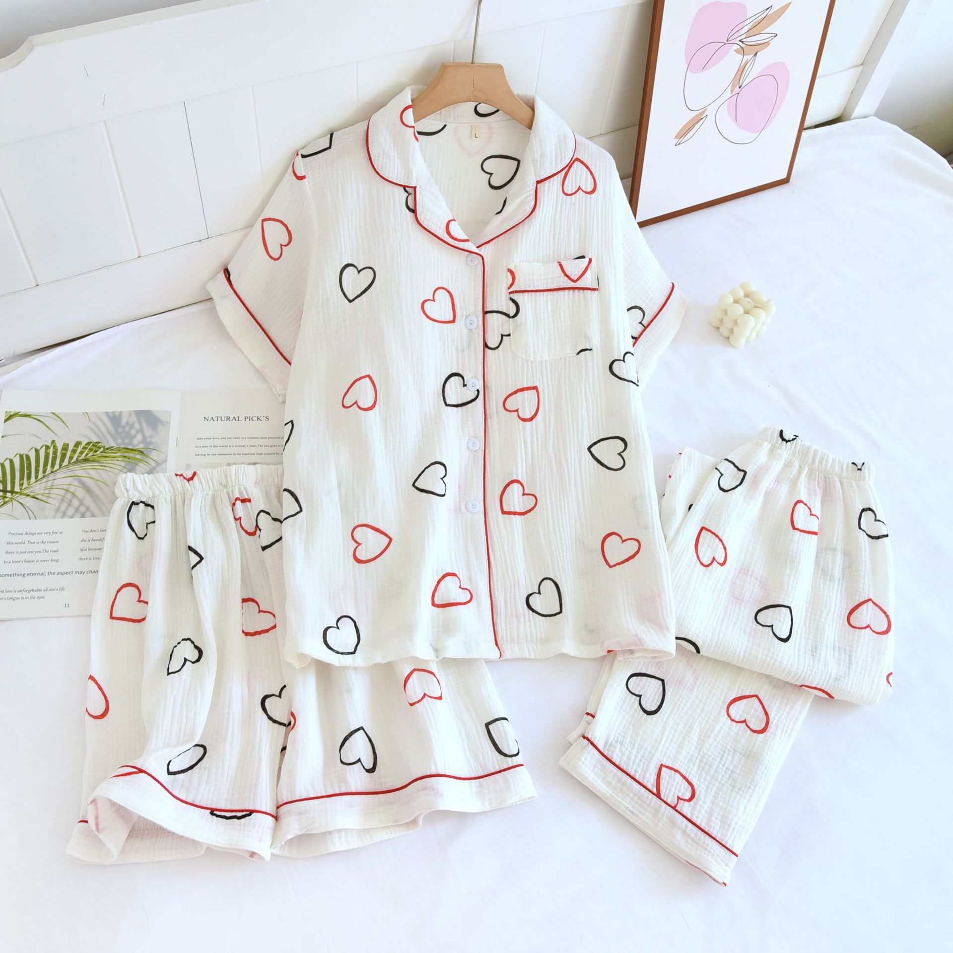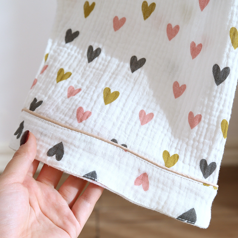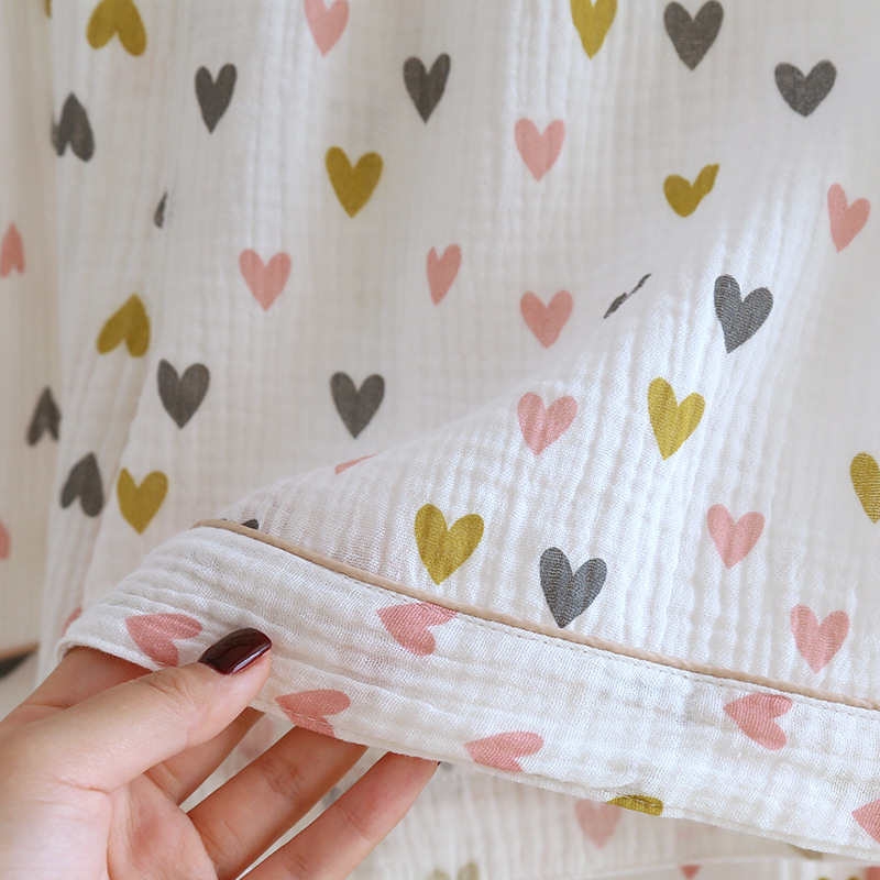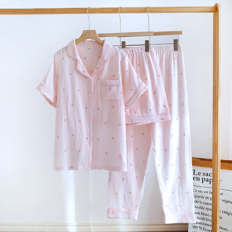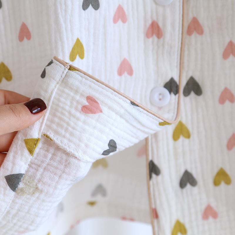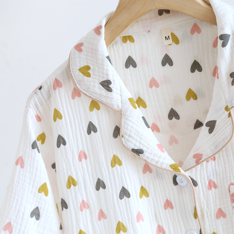 다양한 일본 달콤한 코튼 크레이프 여성 잠옷 3 피스 여름 코튼 짧은 소매 반바지 봄과 여름 세트스토어 가기