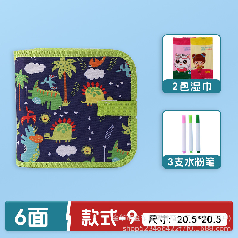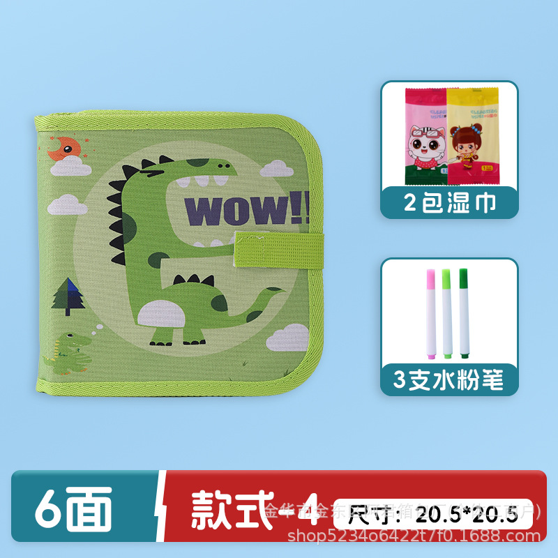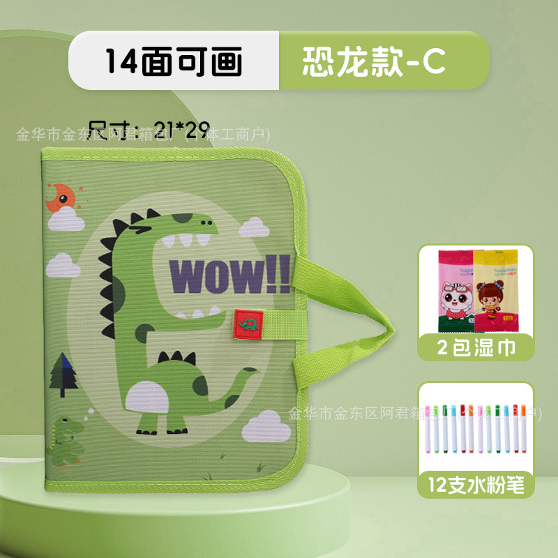 • 더 큰 모델로 업그레이드, 16면에 그릴 수 있음 [큰 녹색 공룡 모델] 무료 물 초크 12개 + 물티슈 2팩 + 복사 그림책