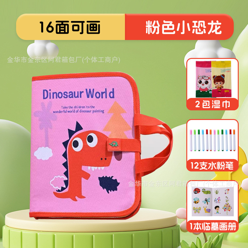 • 업그레이드되고 확대된 모델, 16면 그리기 [핑크 공룡]에는 물분필 12개 + 물티슈 2팩 + 복사 그림책이 포함되어 있습니다.