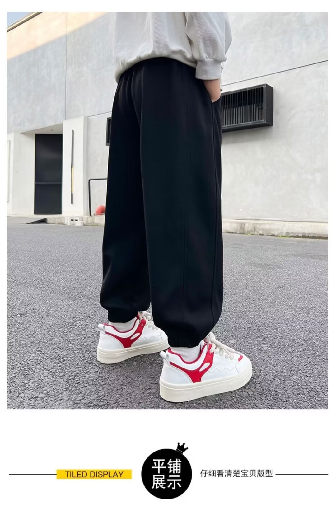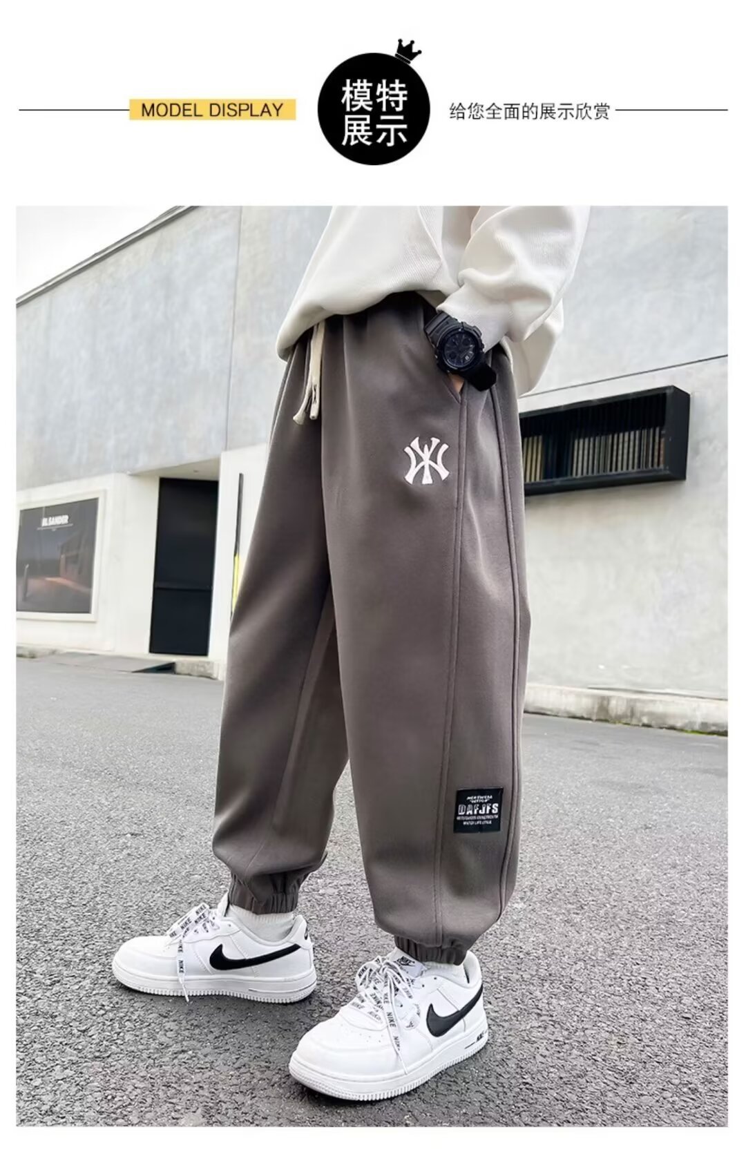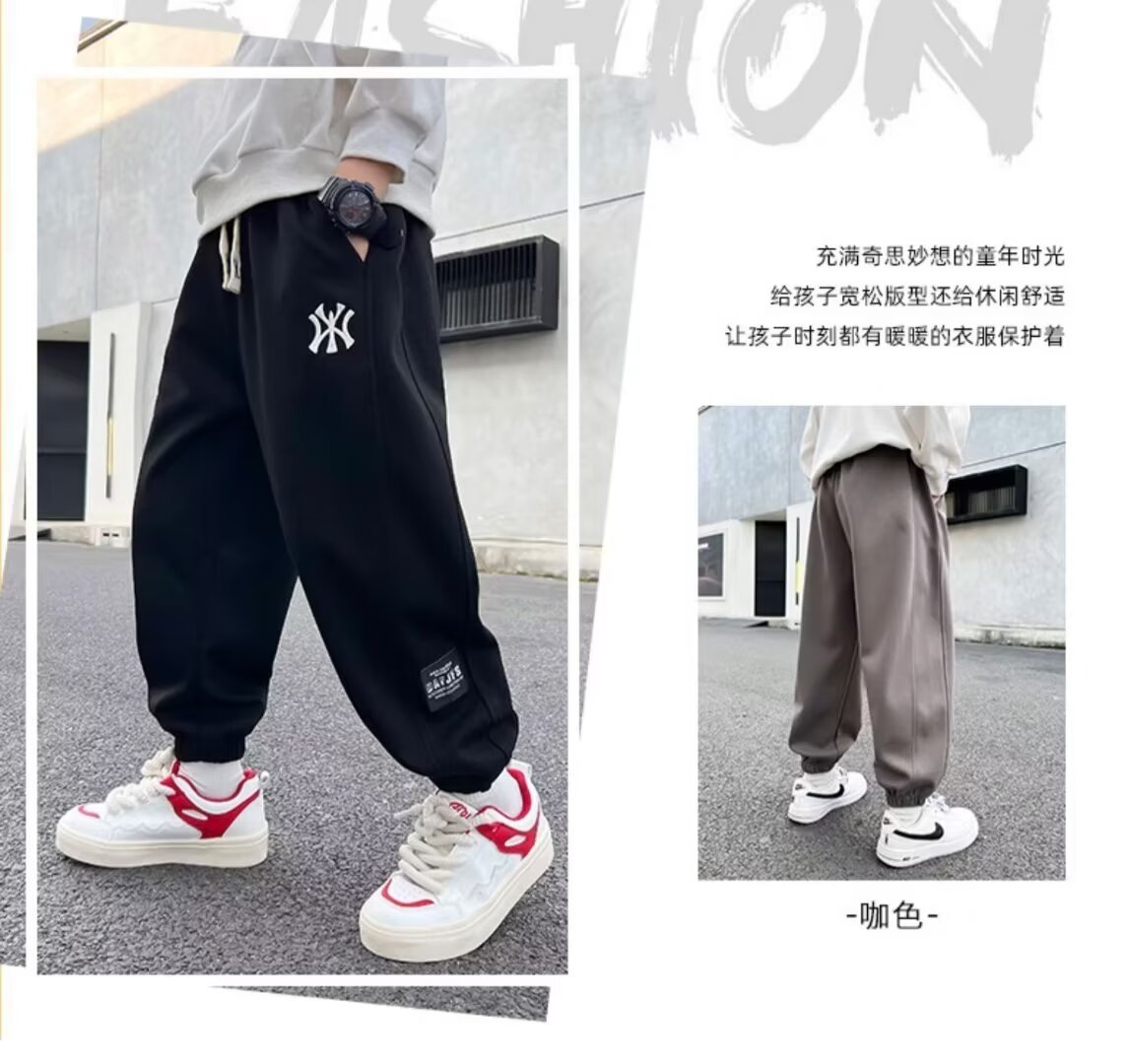 어린이 소년 봄 바지 봄과 가을 2025 새로운 스포츠 봄 중간 및 큰 어린이 운동복 소년 유행 바지스토어 가기
