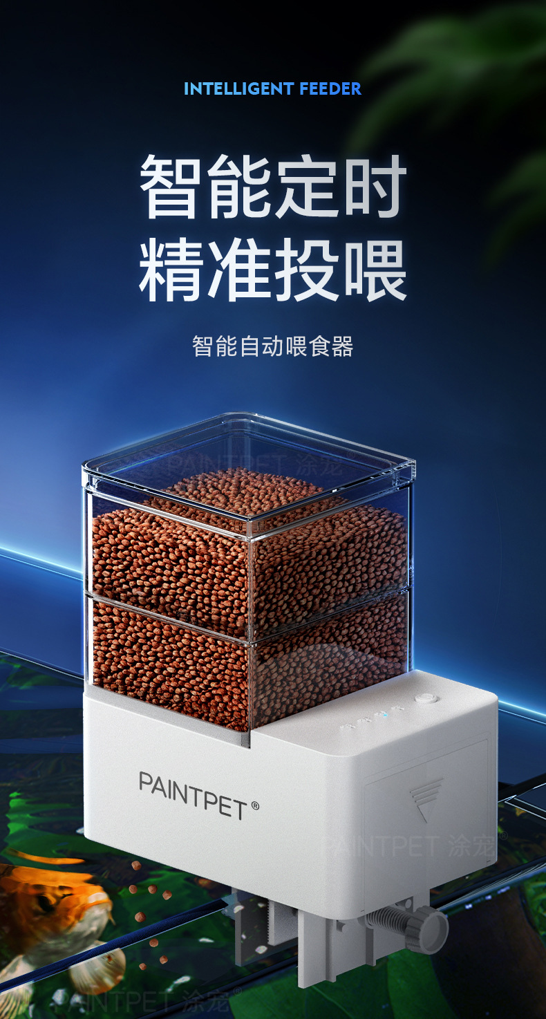 • [업그레이드된 지능형 4단 타이밍] 자동 공급기 500ml 대형 식품 창고 + 1mm 생선 사료 120g