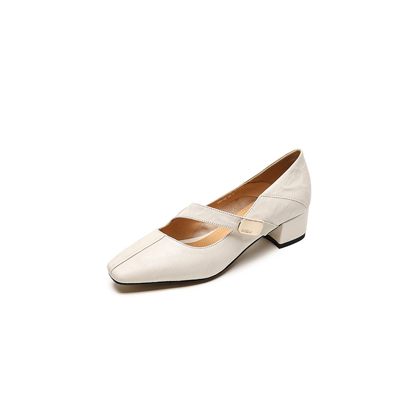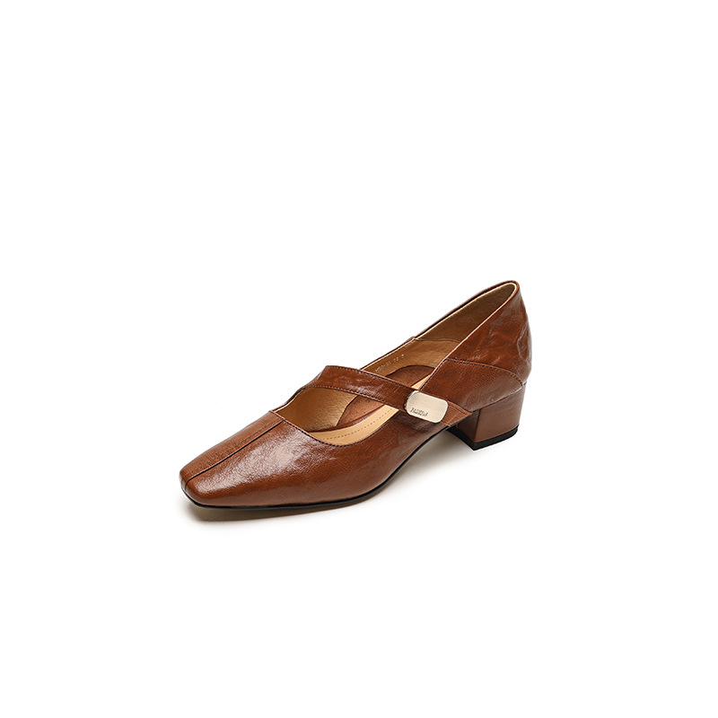 프랑스 스타일 스퀘어 토 청키 힐 메리 제인 신발 양가죽 봄과 가을 새로운 올 매치 정품 가죽 통근 신발스토어 가기