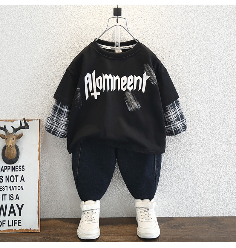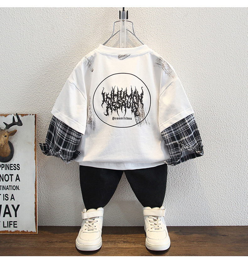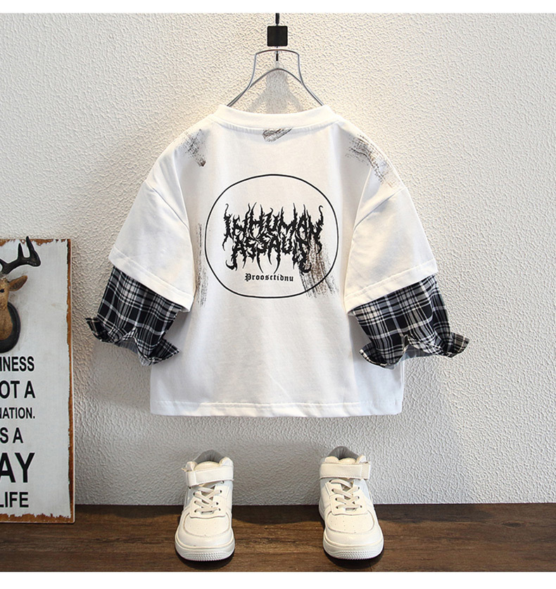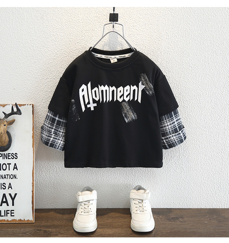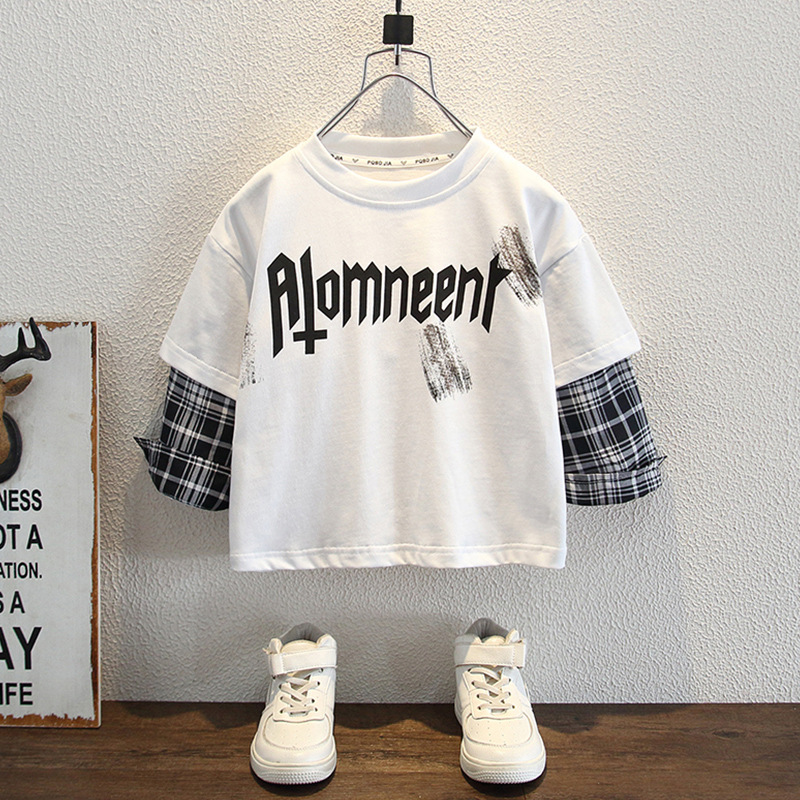 남학생 긴팔 티셔츠 2025 새 어린이 봄 원피스 더피 잘 생긴 스타일 아기의 봄과 가을 코튼 보이의 가짜 투피스 탑스토어 가기