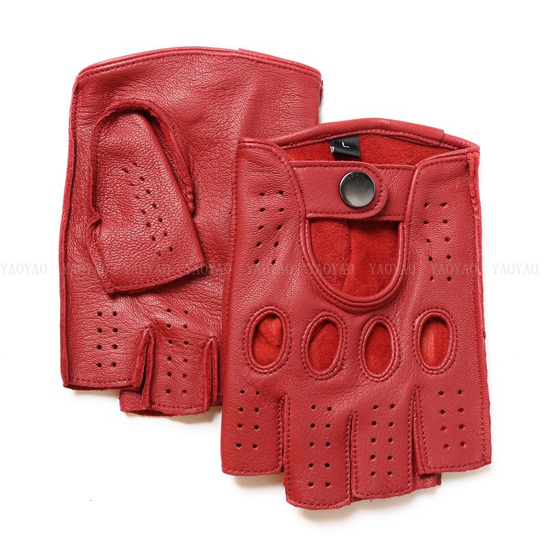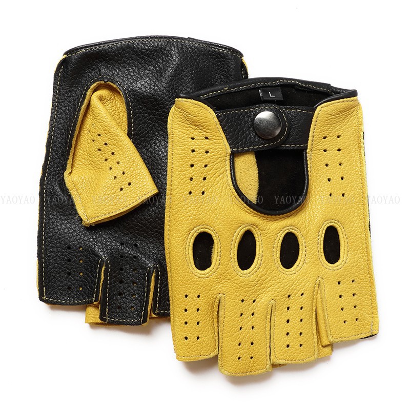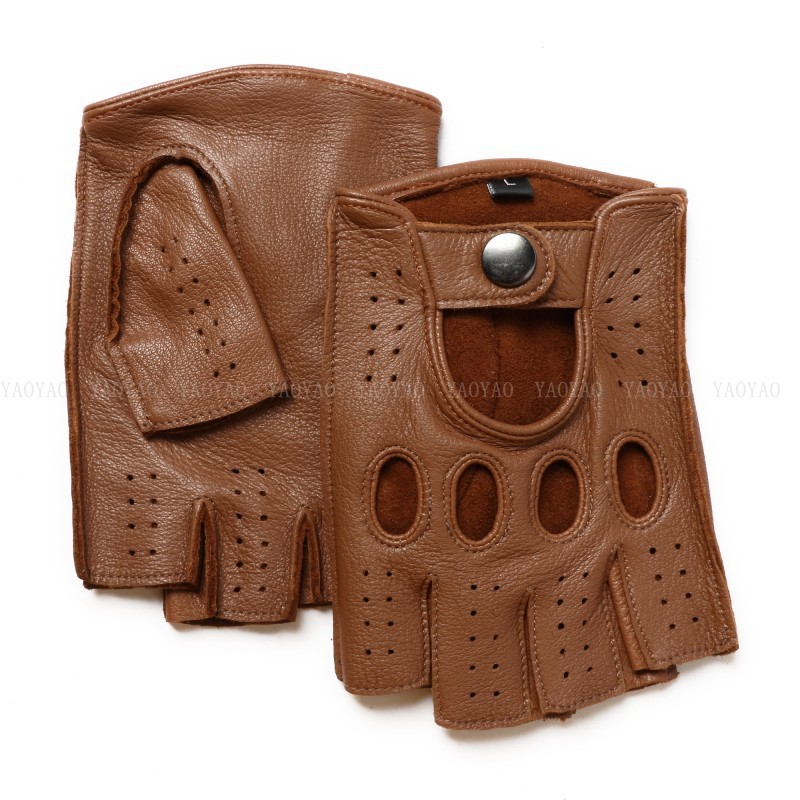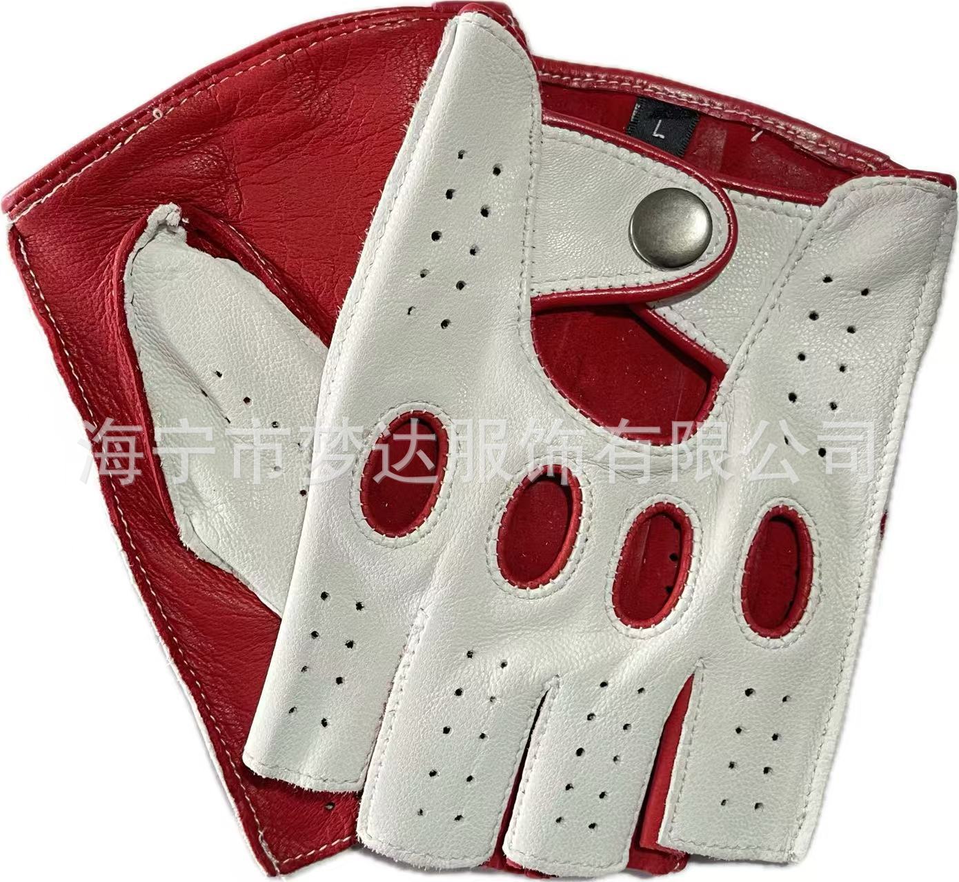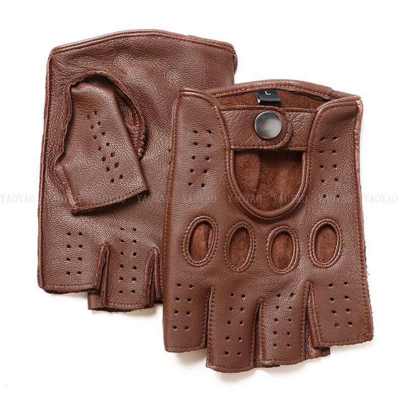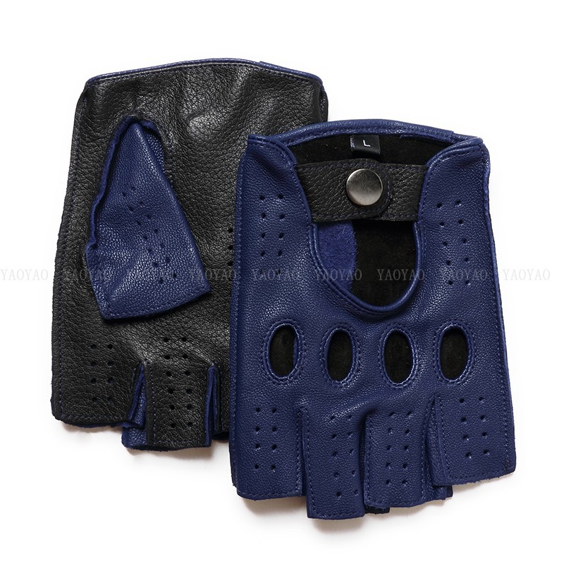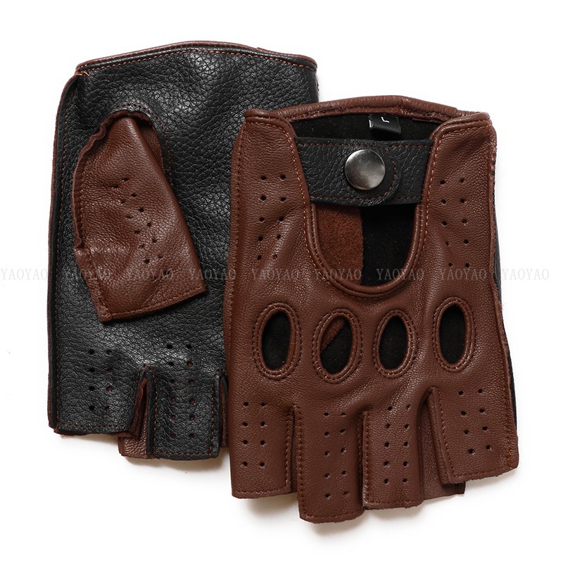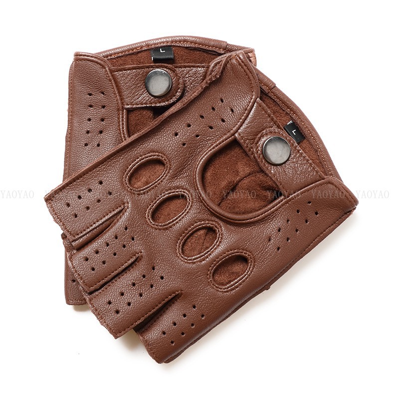 국경 간 남성 가죽 자동차 운전 오토바이 복고풍 반 손가락 구멍 통기성 오토바이 염소 장갑 색상 대비