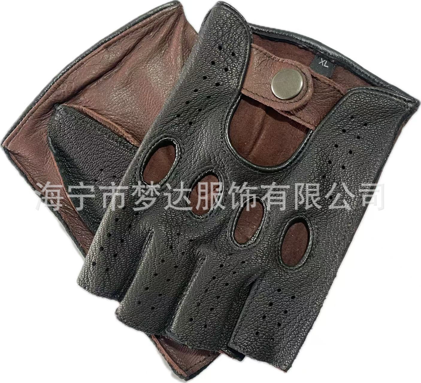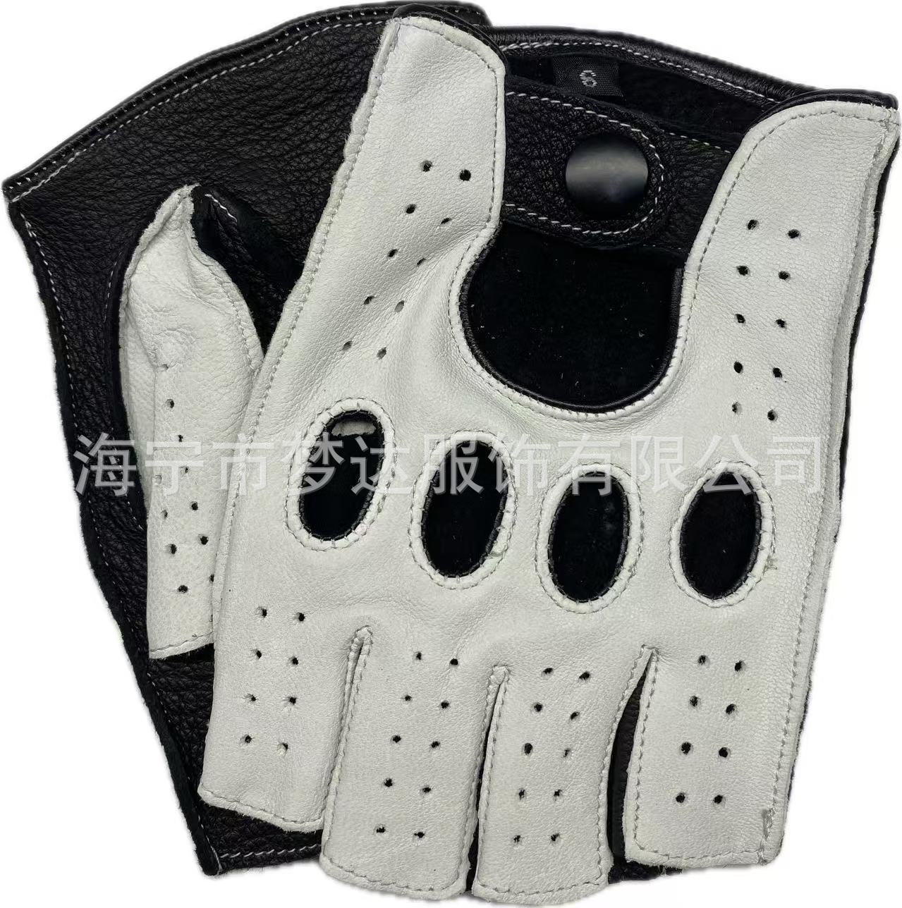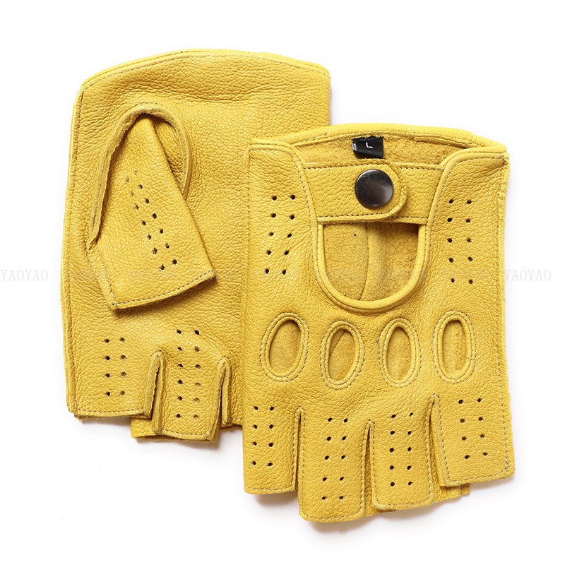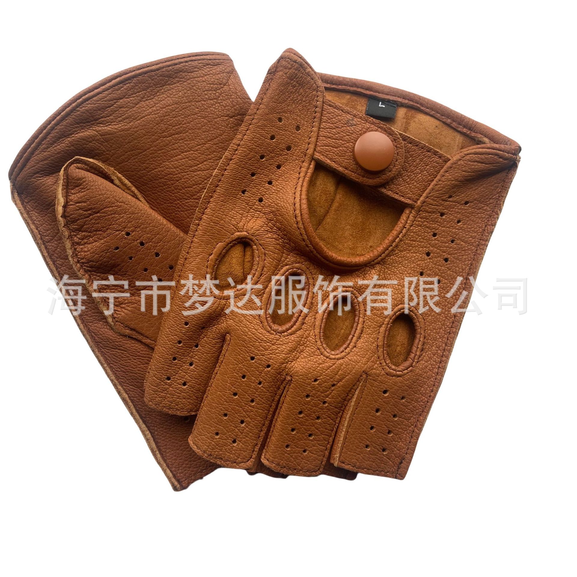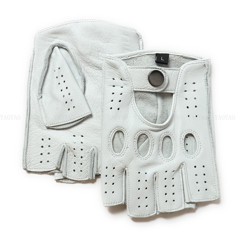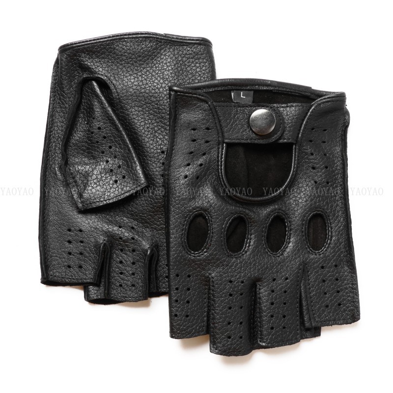 국경 간 남성 가죽 자동차 운전 오토바이 복고풍 반 손가락 구멍 통기성 오토바이 염소 장갑 색상 대비