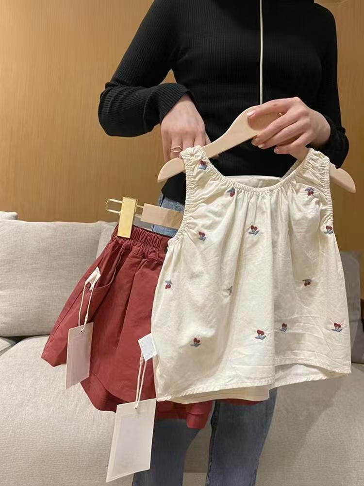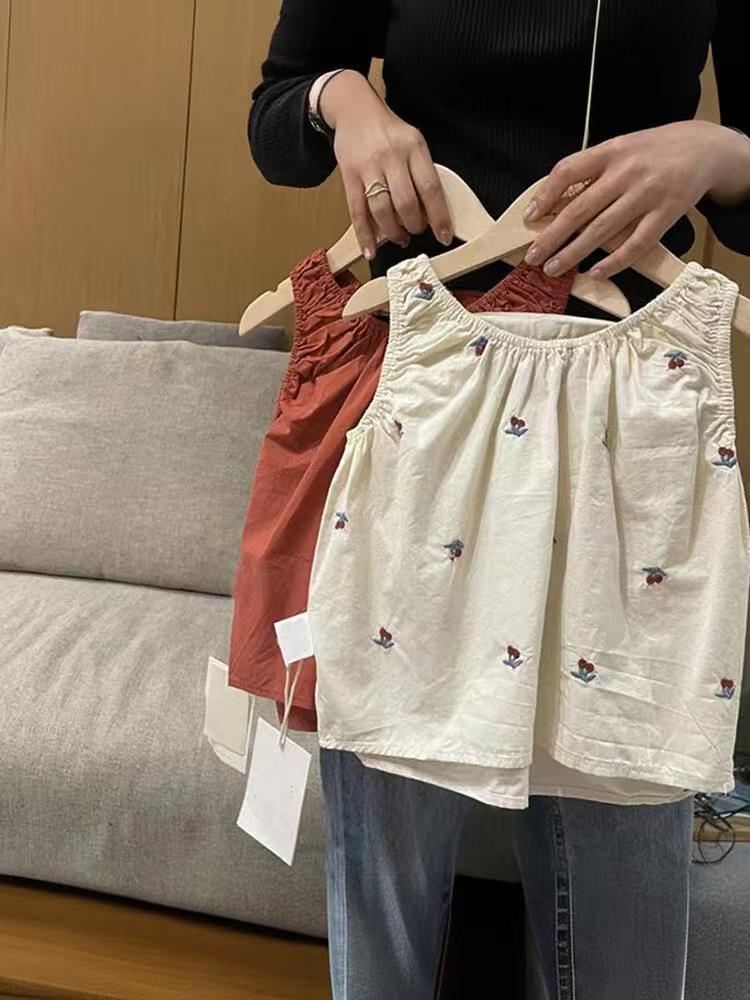 2025 년 여름 새로운 도착 소녀 여름 원피스 유행 서양식 자수 슬링 어린이 민소매 탑 걸스 아우터 조끼