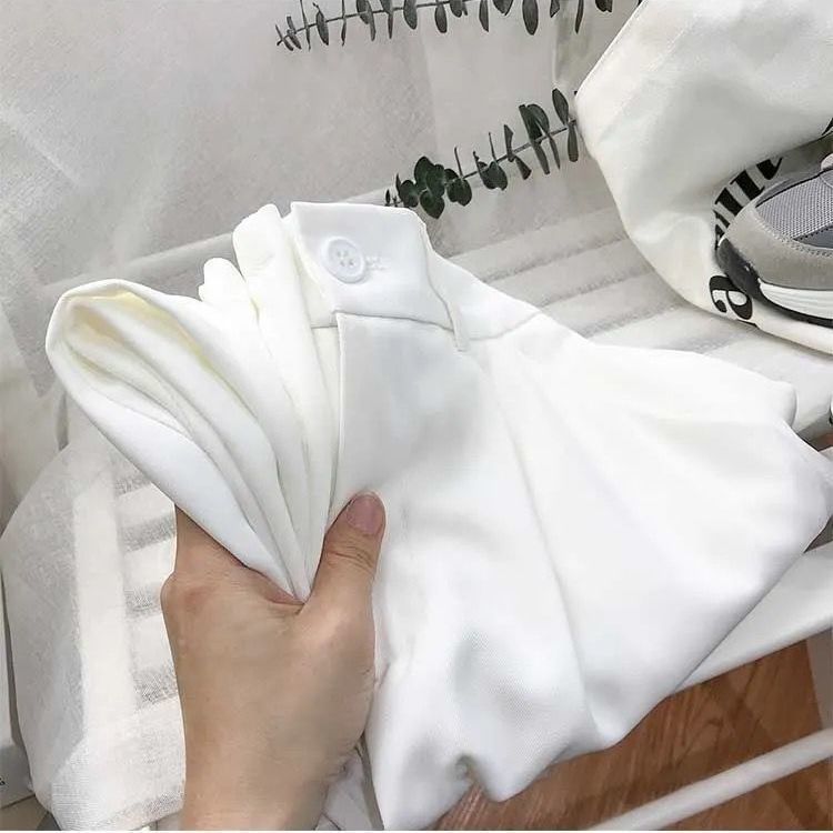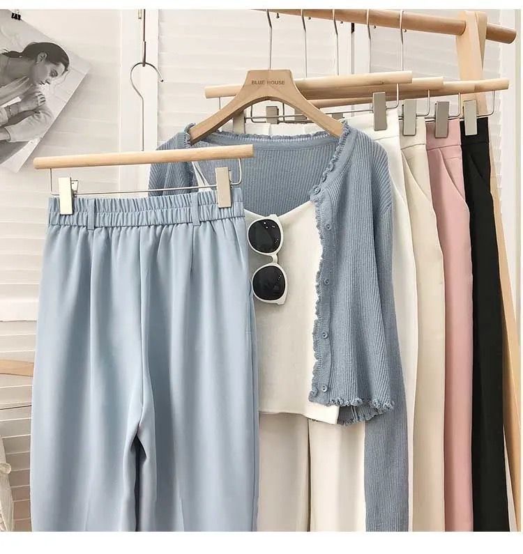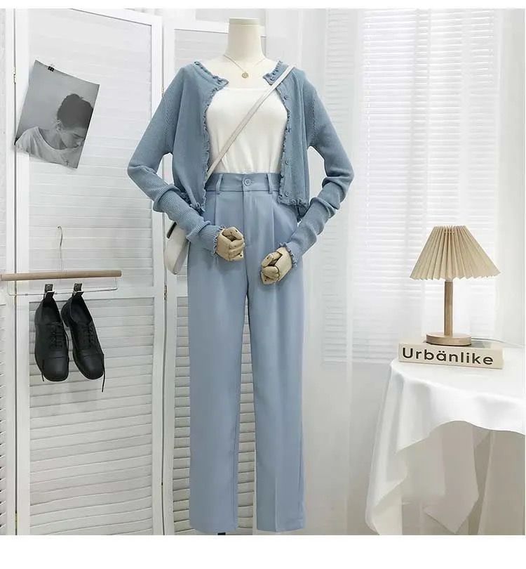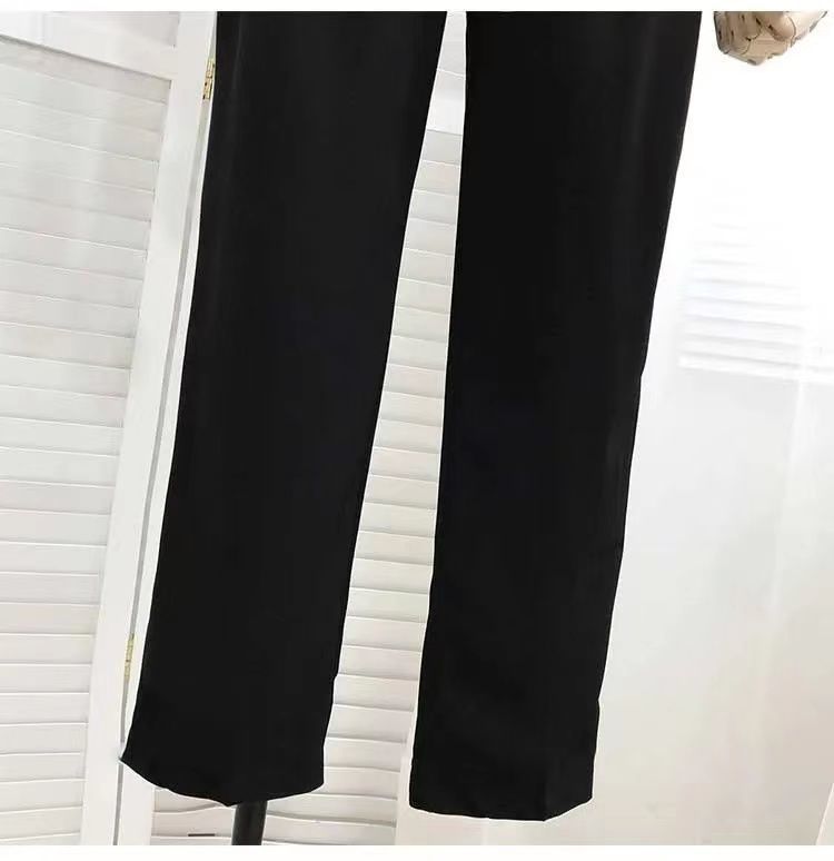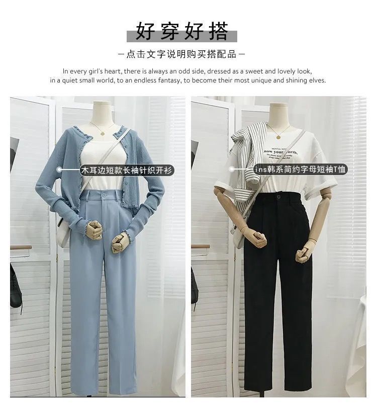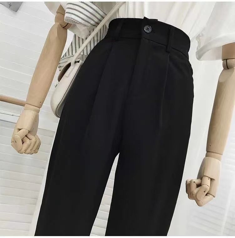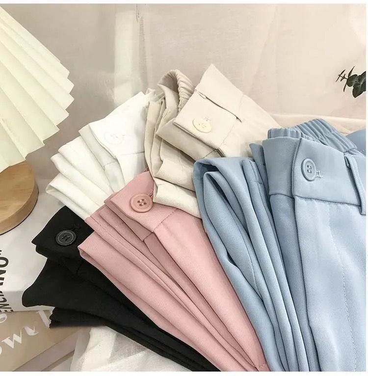 봄과 여름을위한 여성용 한국식 세트 바지 최신 하이 웨이스트 슬리밍 스트레이트 팬츠 헐렁한 크롭 캐주얼 파이프 팬츠