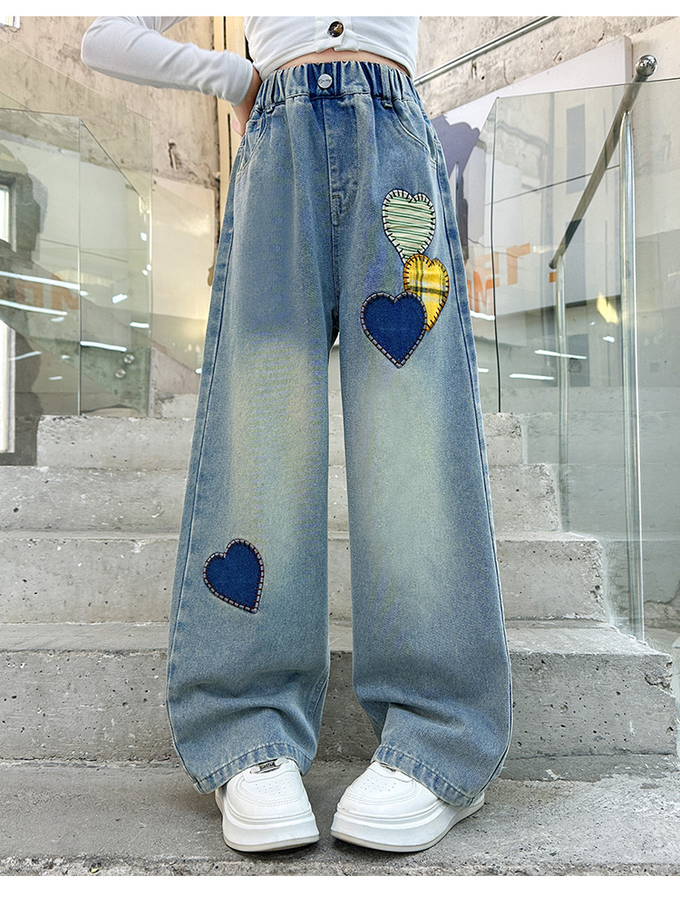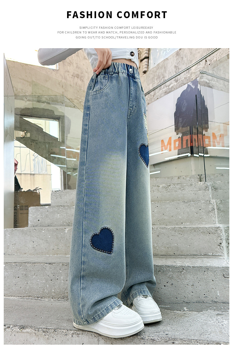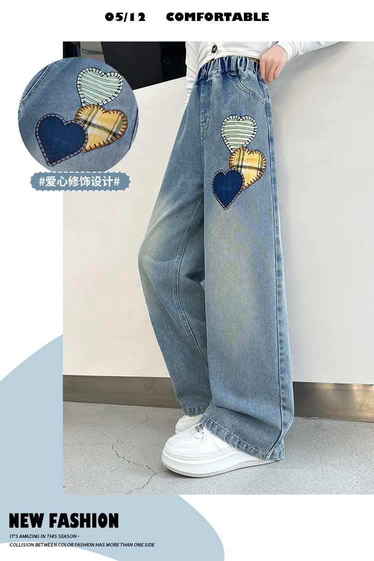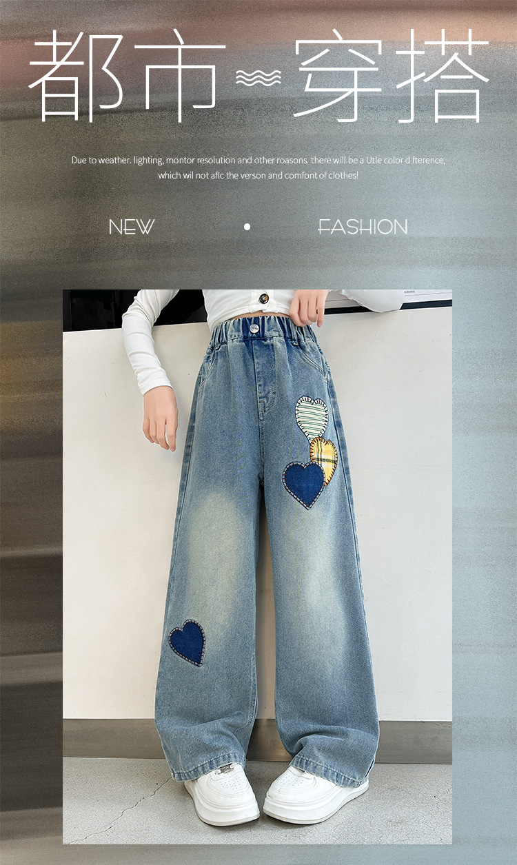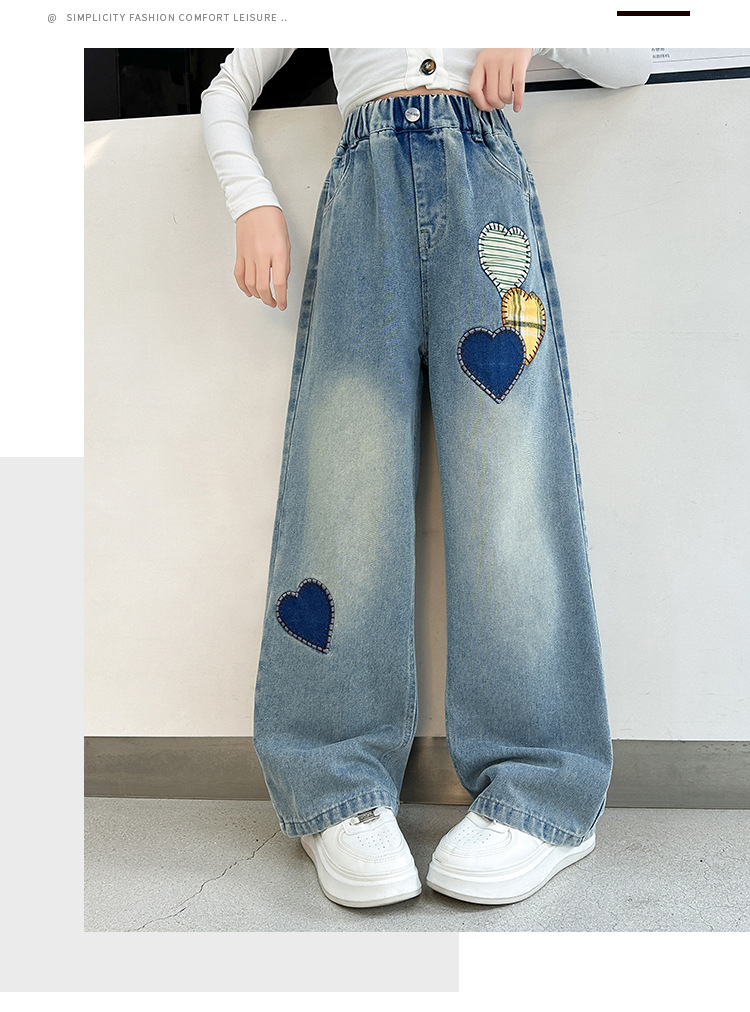 여자 바지 봄 느슨한 한국 스타일 어린이 서양식 올매치 여자 중학교 스트레이트 다리 청바지 Huzhou Zhili