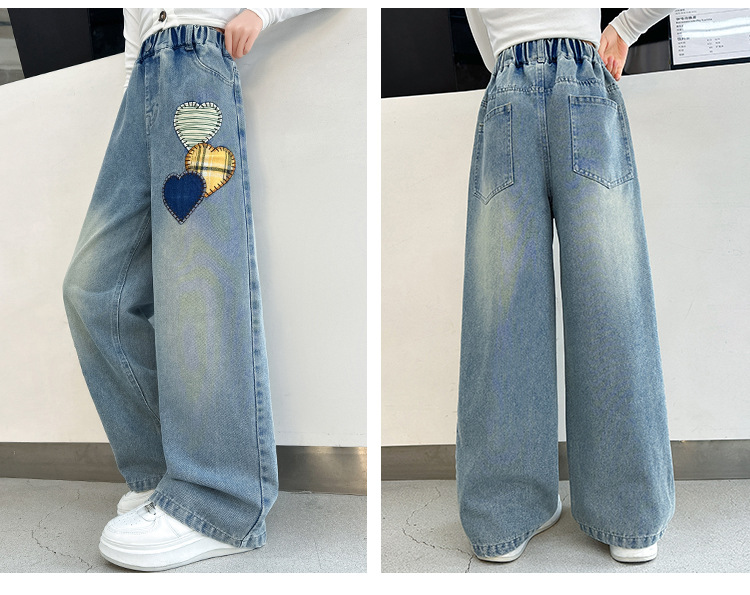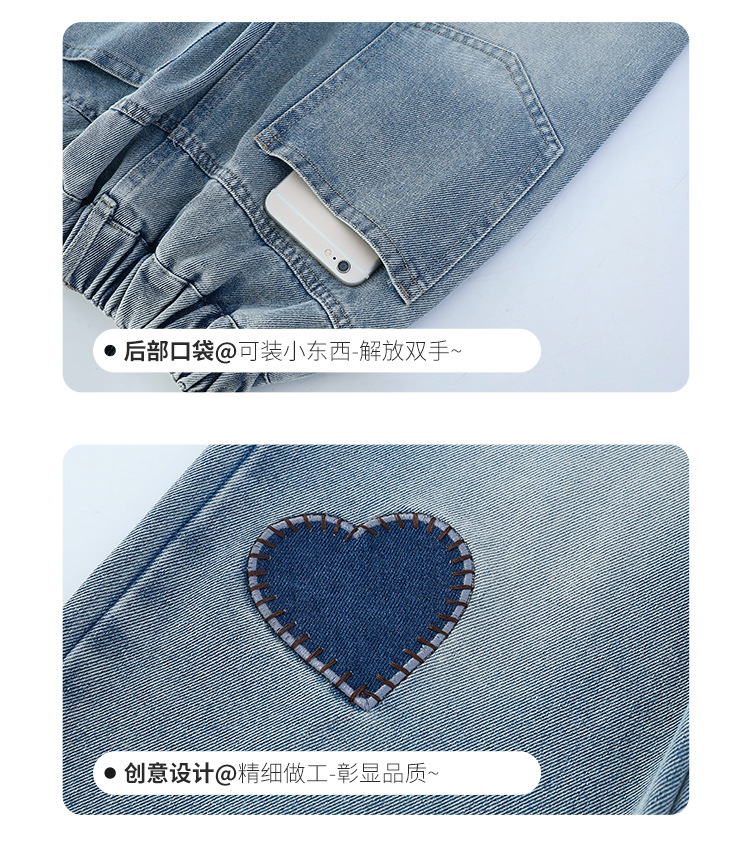 여자 바지 봄 느슨한 한국 스타일 어린이 서양식 올매치 여자 중학교 스트레이트 다리 청바지 Huzhou Zhili스토어 가기