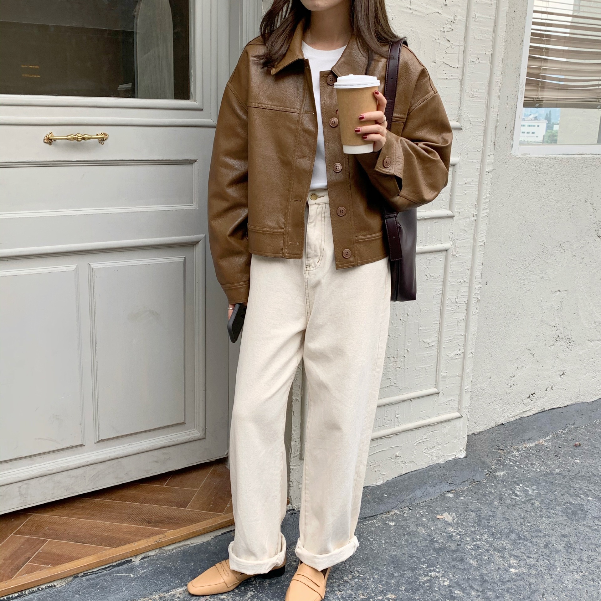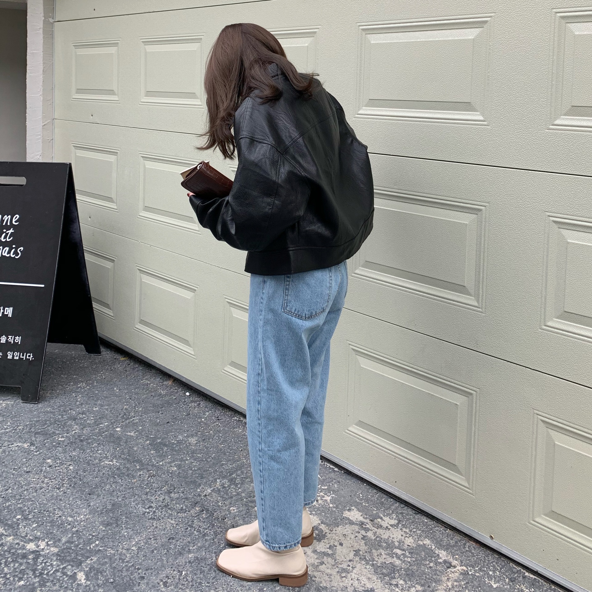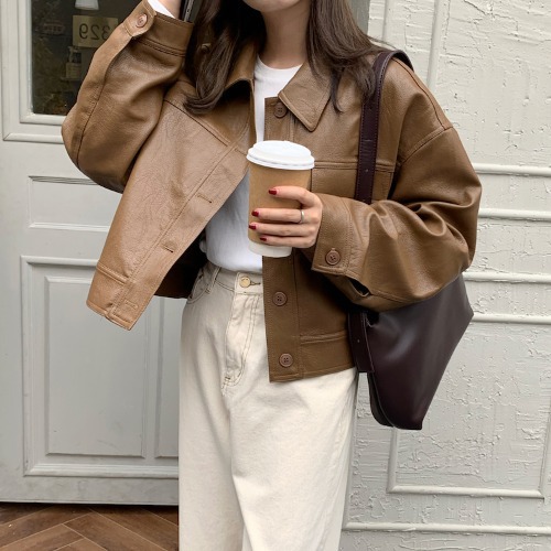 실제 촬영 2025 초봄과 가을 새로운 한국 추천 pu 가죽 느슨한 재킷 코트 여성 의류 유지스토어 가기