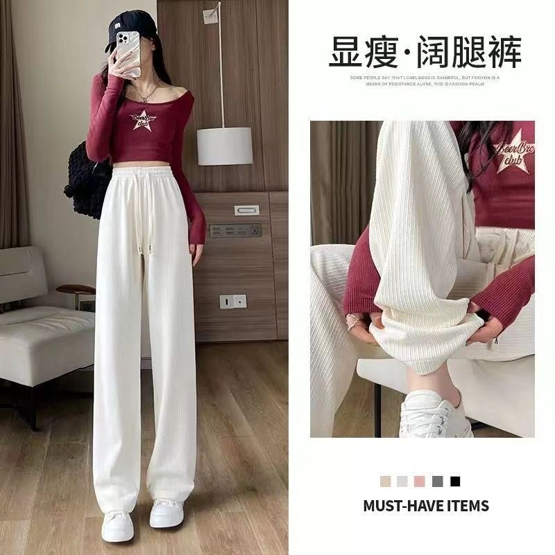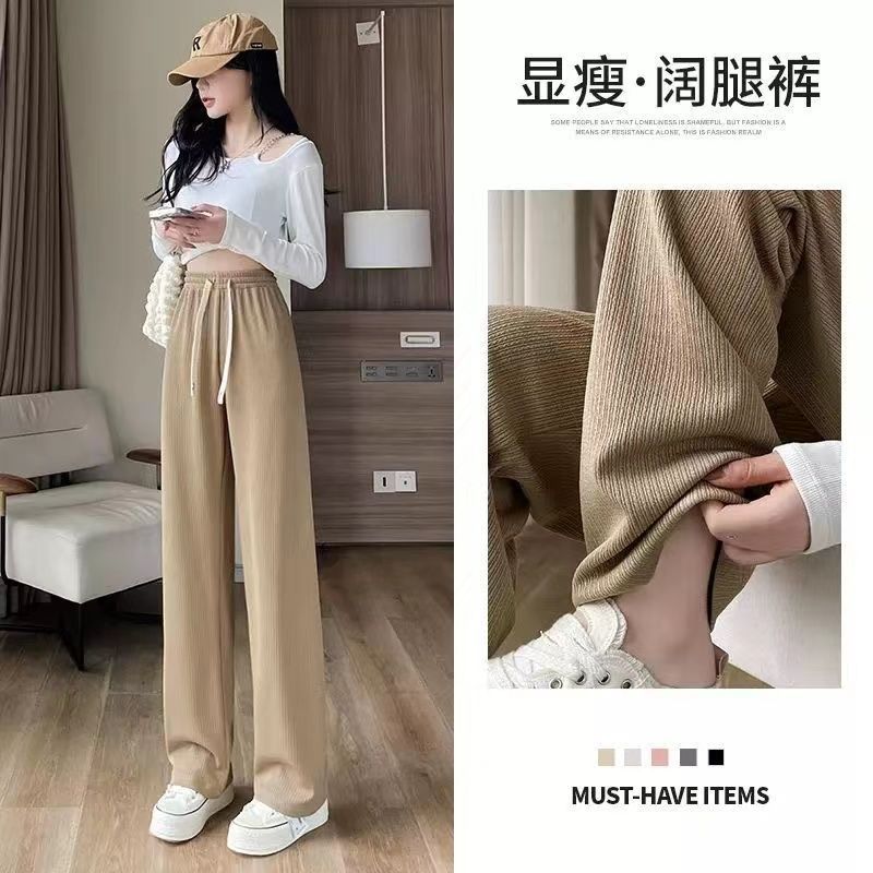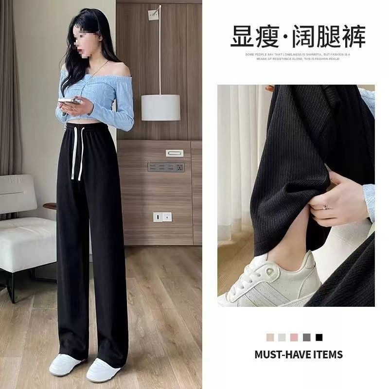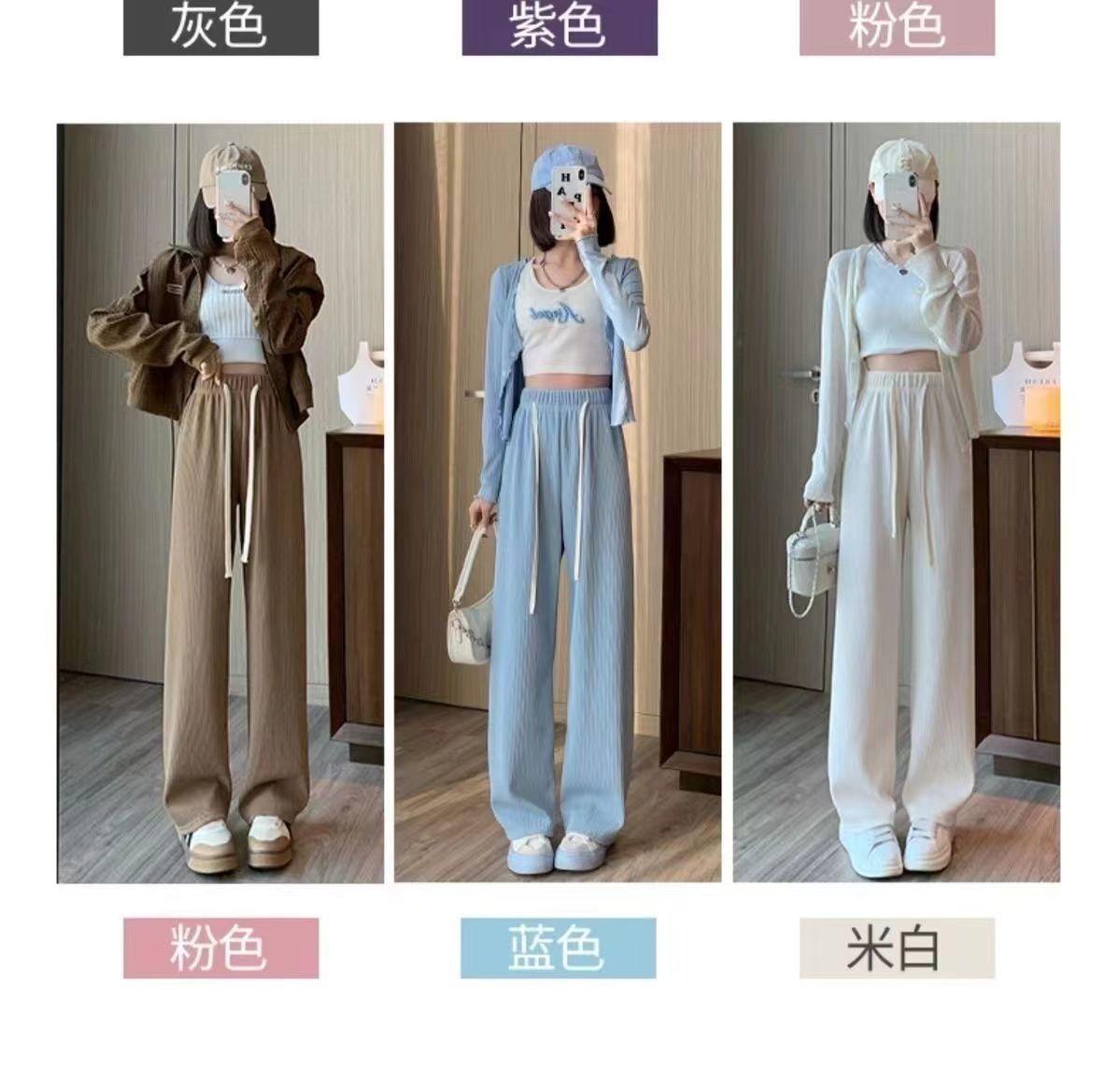 구름 넓은 다리 바지 여성 여름 새로운 얇은 뾰족한 허리 높은 허리 바지 느슨한 캐주얼 바지스토어 가기