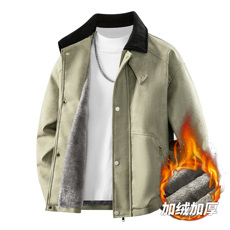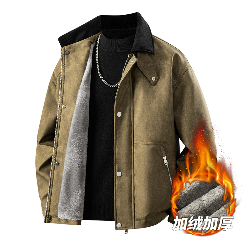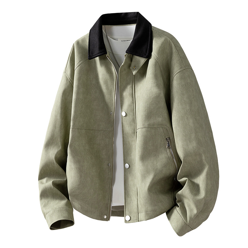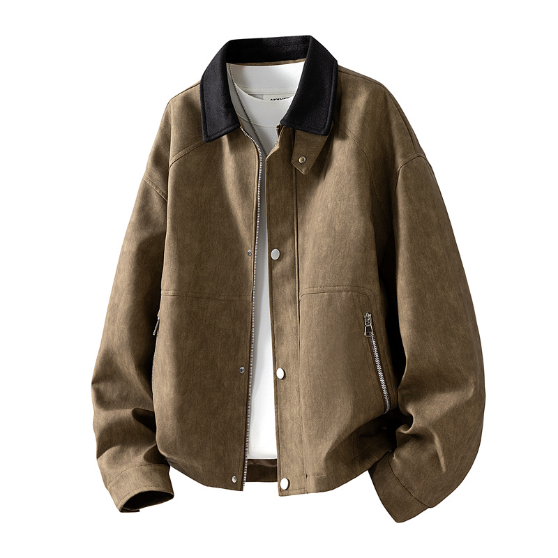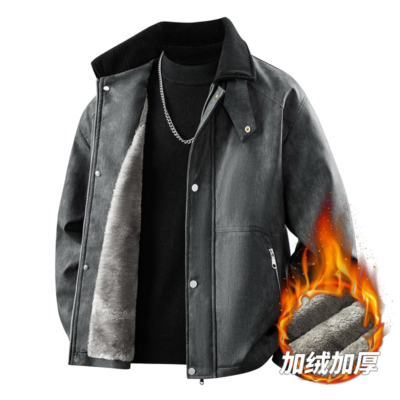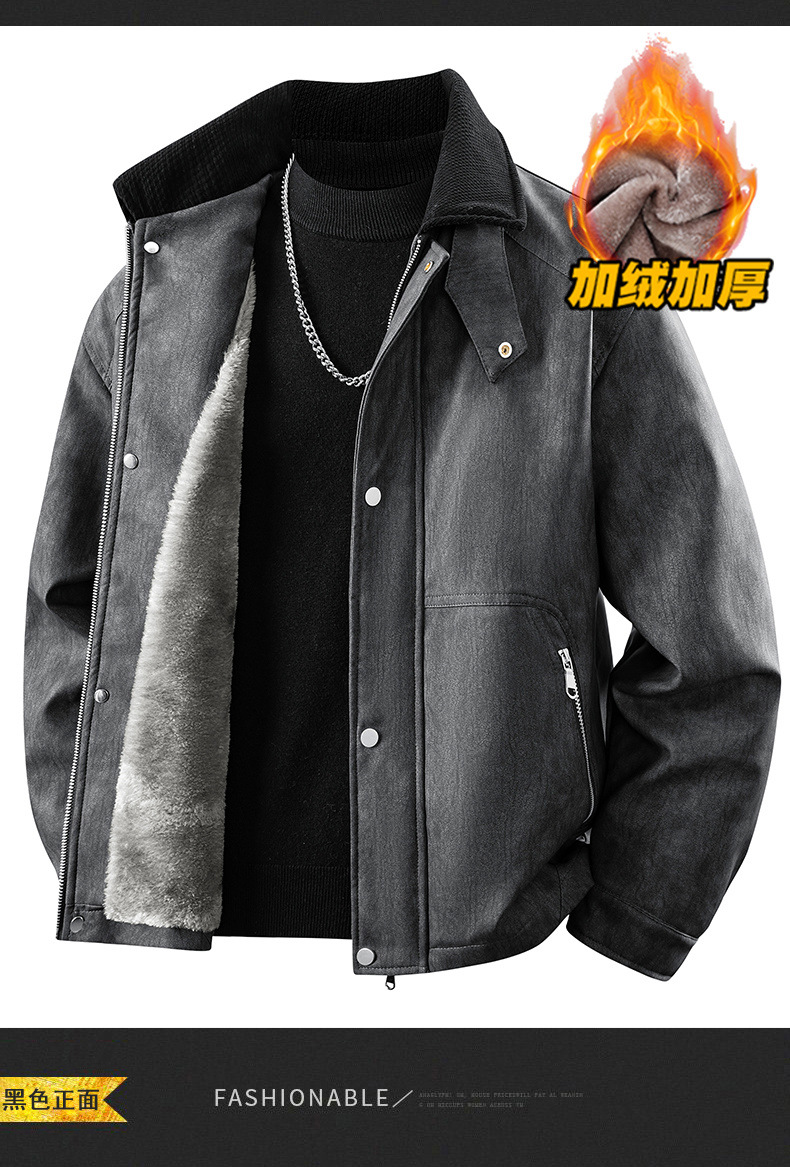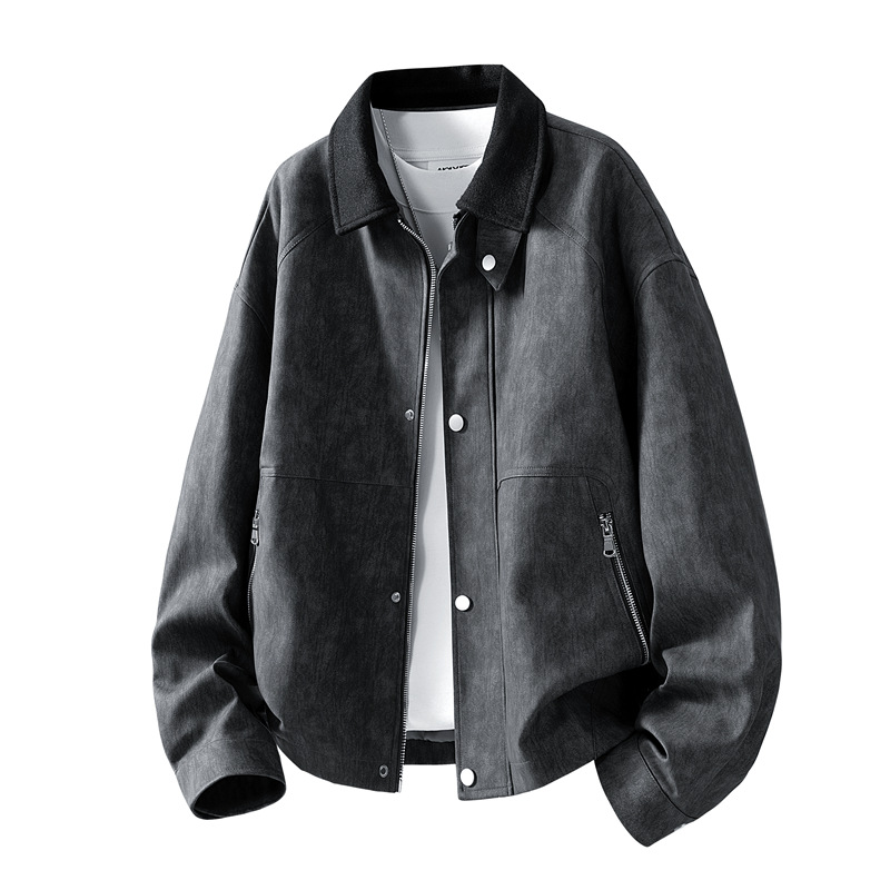 가을 겨울 기모 처리된 오토바이 스타일 스웨이드 캐주얼 홍콩 스타일 루즈핏 가죽 재킷 남성 트렌디 빅사이즈 아우터 크로스보더스토어 가기