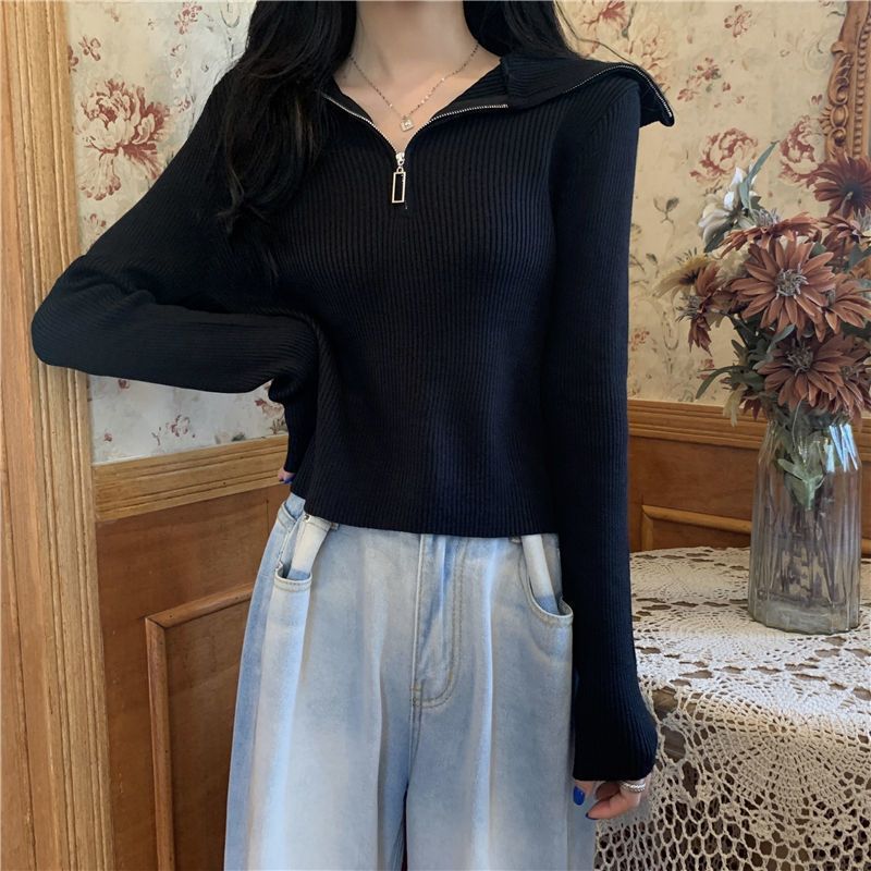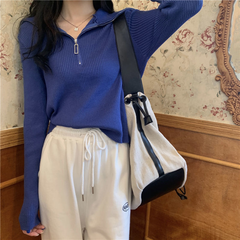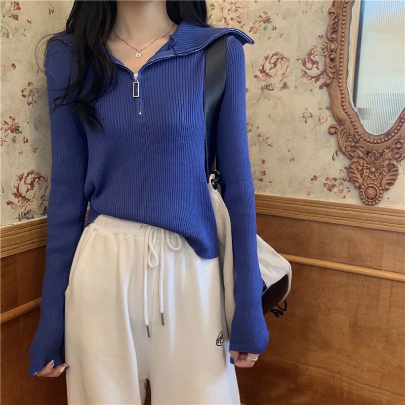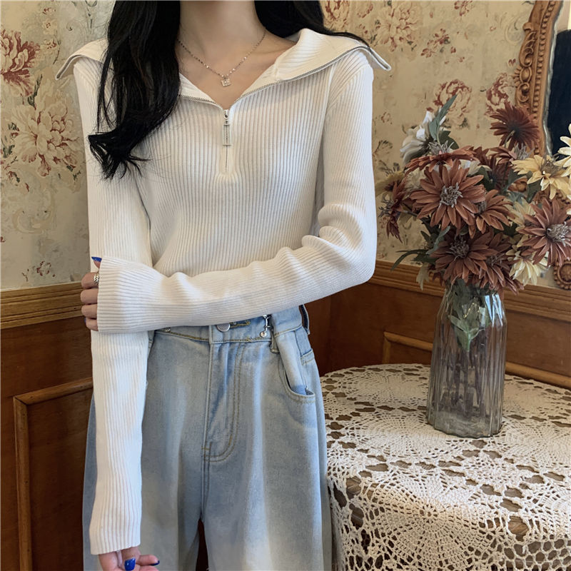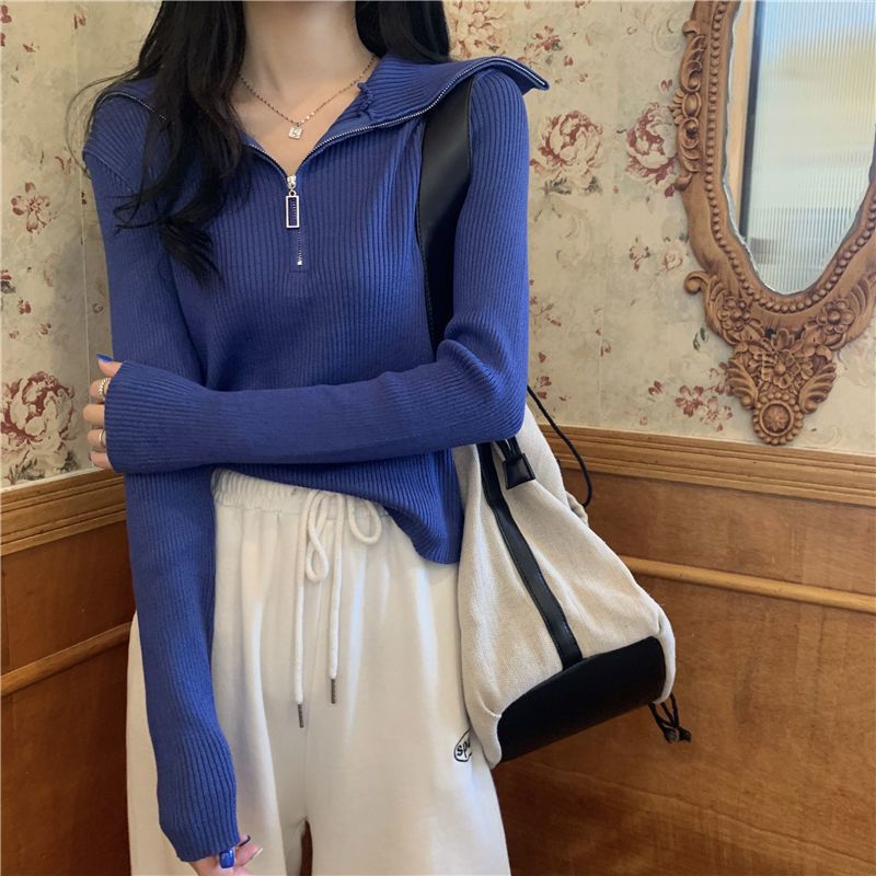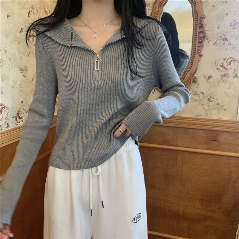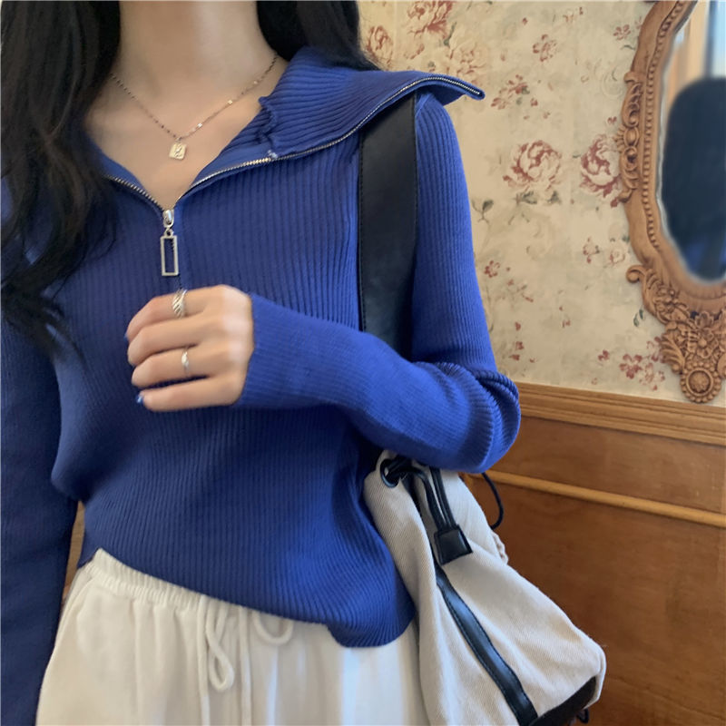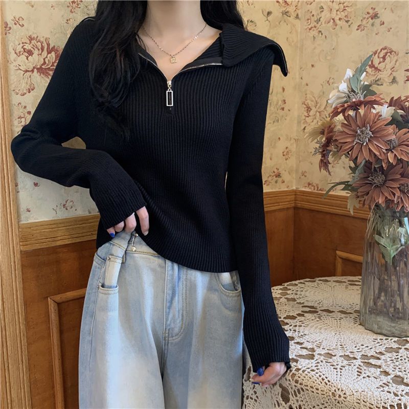 디자인 센스 지퍼 긴팔 니트웨어 여성용 가을 새로운 느슨한 올매치 얇은 코트 초가을 최고 게으른 스웨터스토어 가기