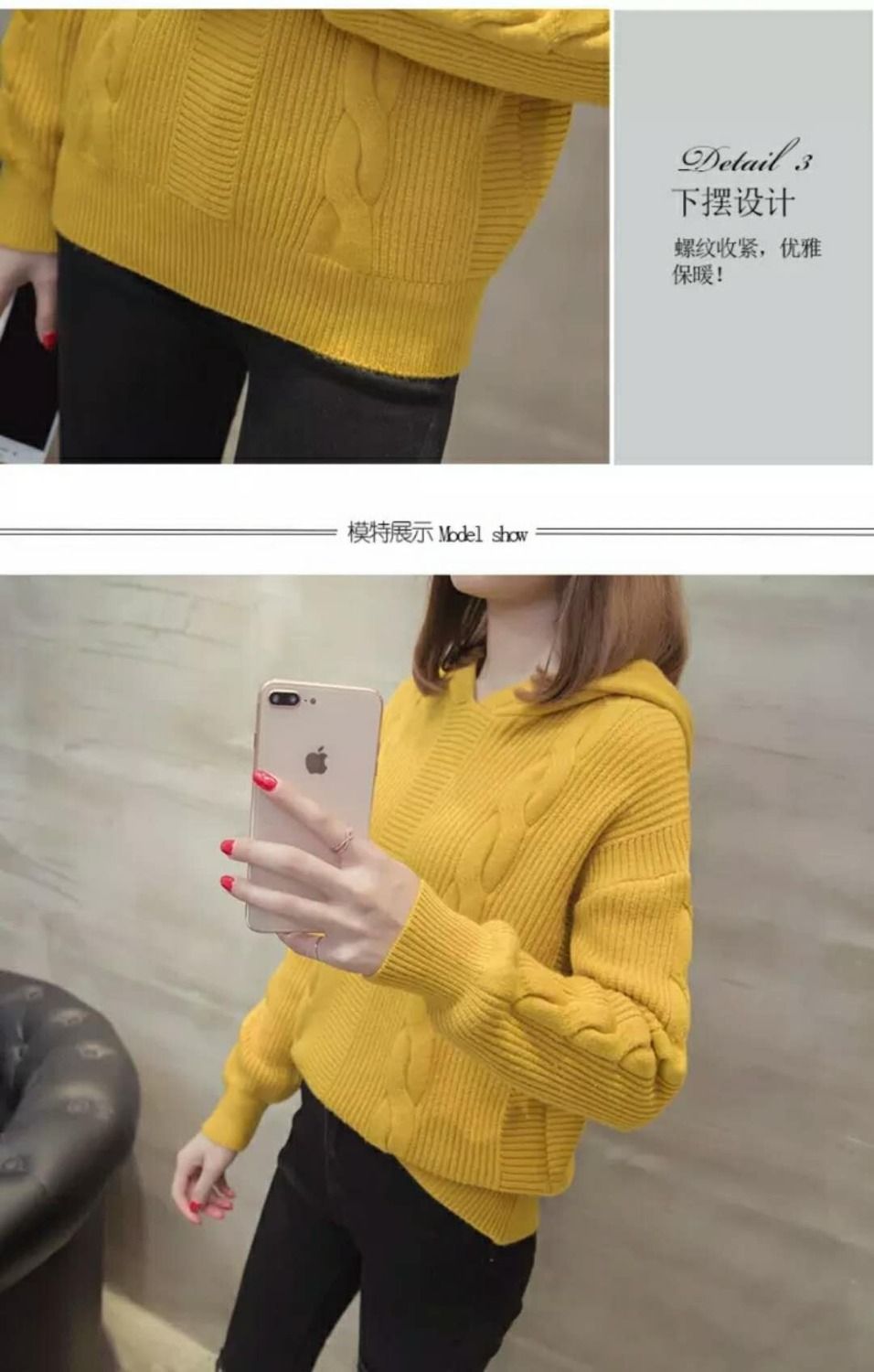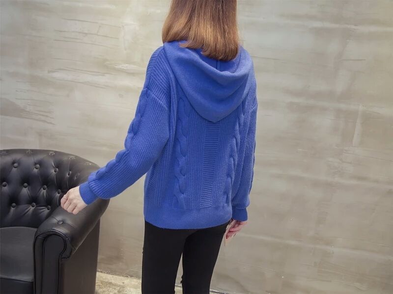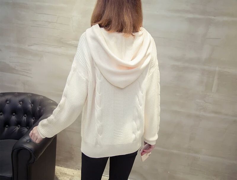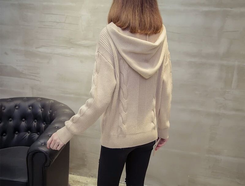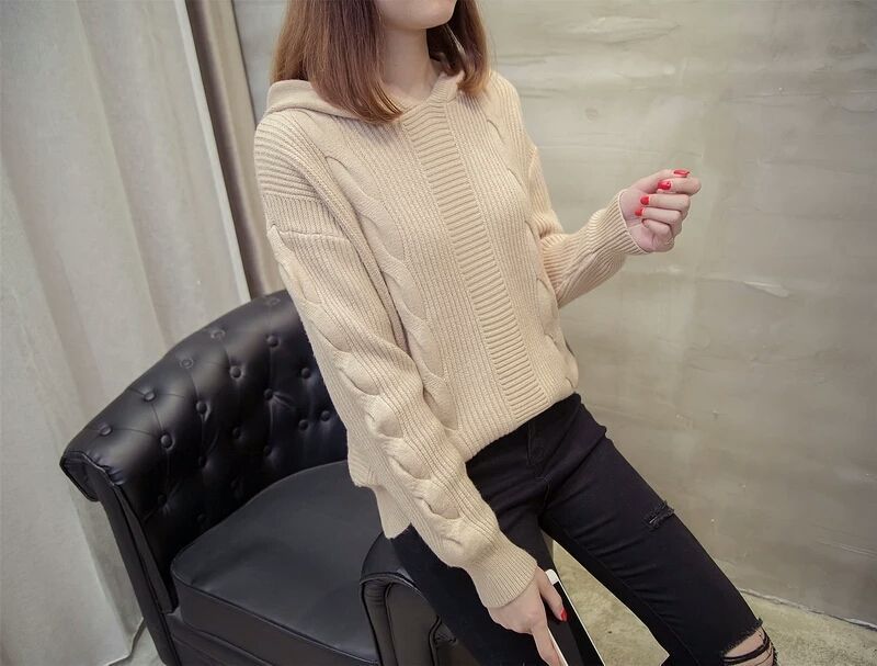 후드 스웨터 여성용 코트 니트 스웨터 가을 새로운 한국 스타일 느슨한 두꺼운 풀오버 트위스트 니트베이스 셔츠