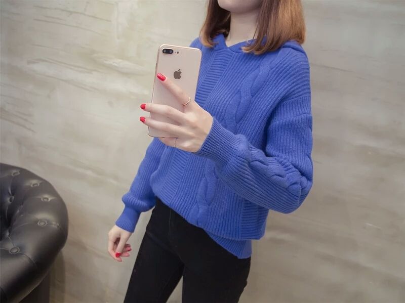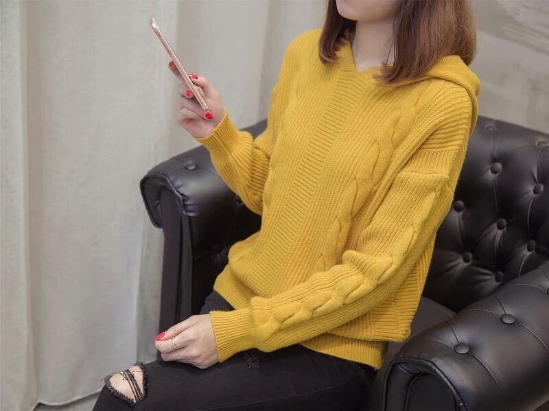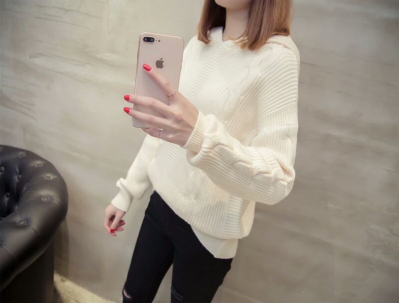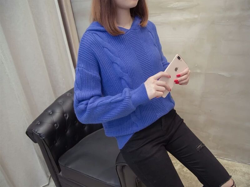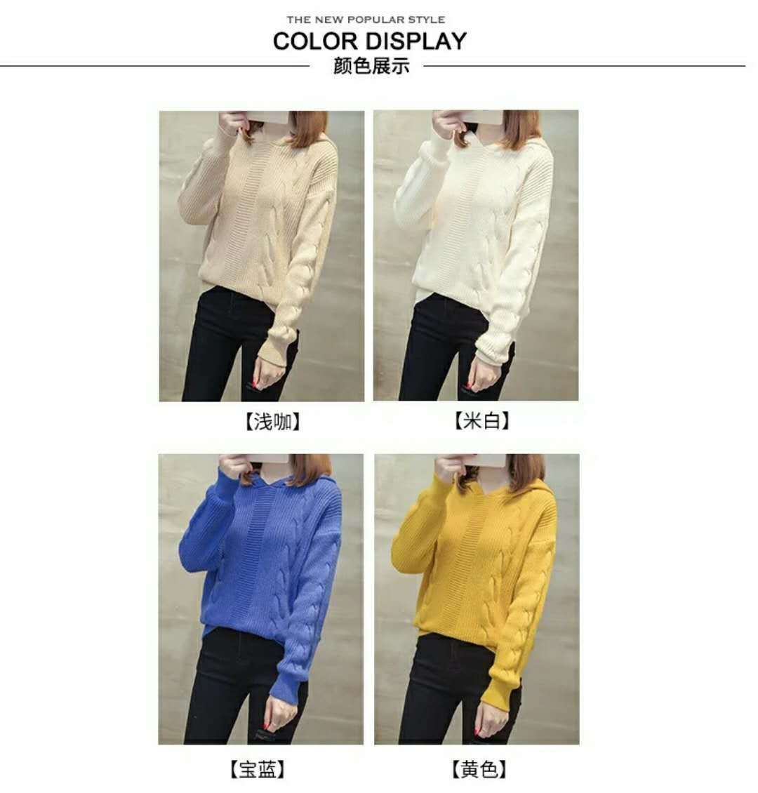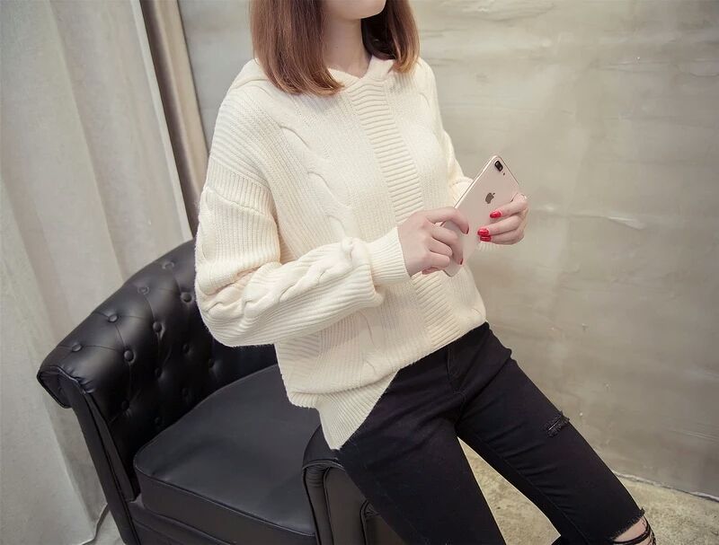 후드 스웨터 여성용 코트 니트 스웨터 가을 새로운 한국 스타일 느슨한 두꺼운 풀오버 트위스트 니트베이스 셔츠