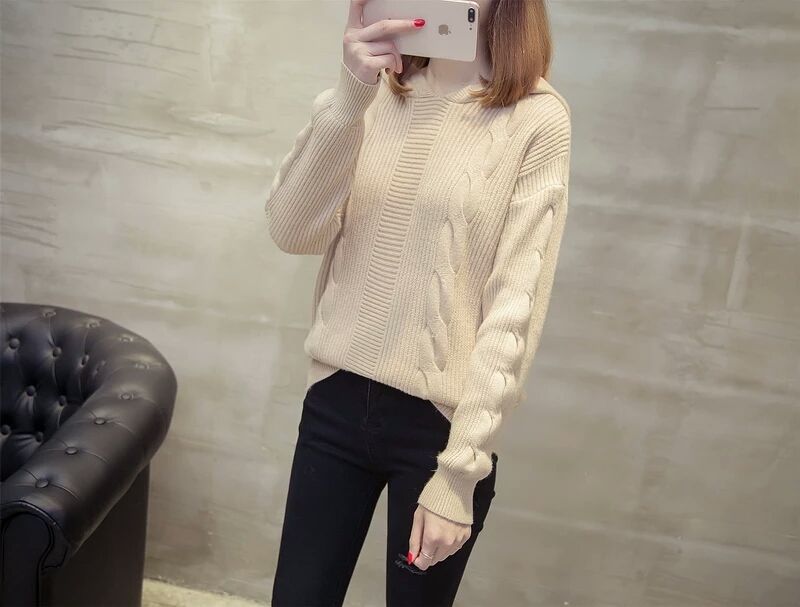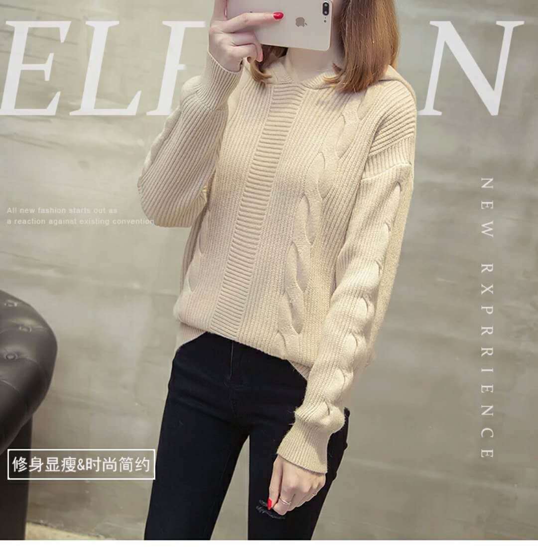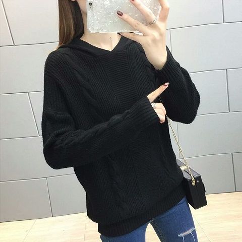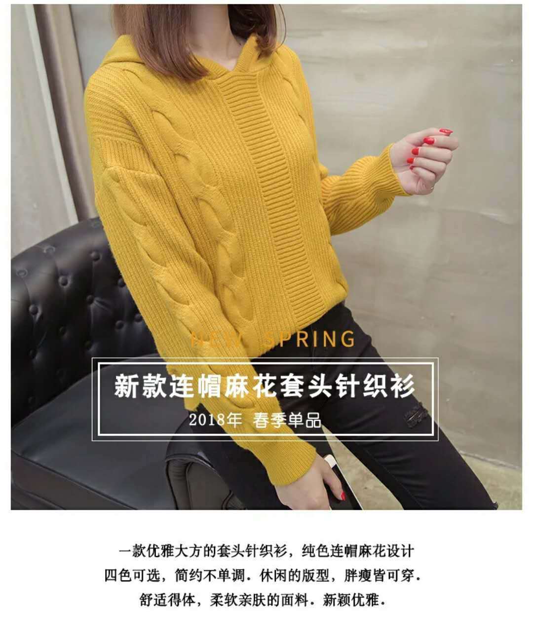 후드 스웨터 여성용 코트 니트 스웨터 가을 새로운 한국 스타일 느슨한 두꺼운 풀오버 트위스트 니트베이스 셔츠스토어 가기