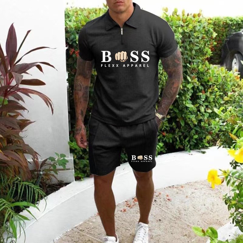 대외 무역 남자 반팔 반바지 캐주얼 세트 유럽과 미국 아마존 슬림 핏 남자 2023 여름 국경 투피스 세트스토어 가기