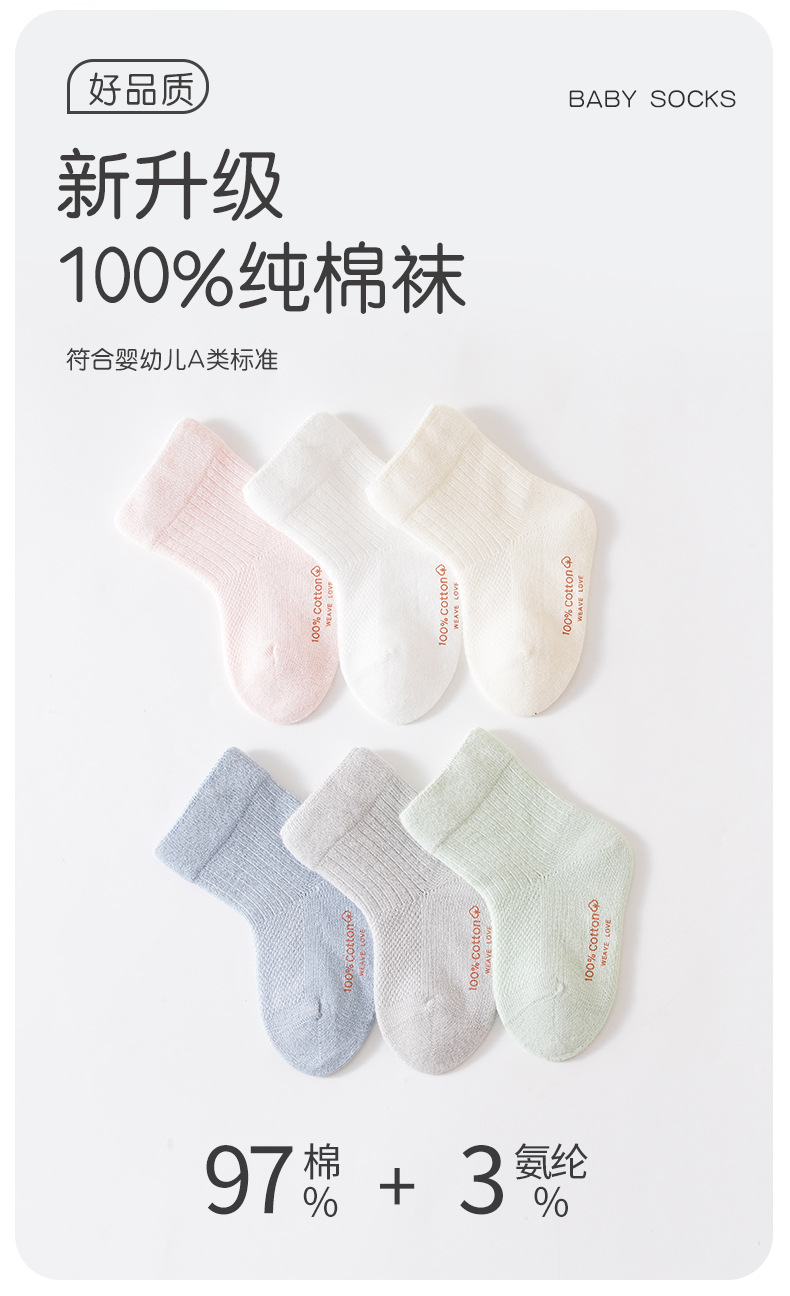 Sunseeker Yujia 순수한면 얇은 어린이 양말 봄과 여름 메쉬 중간 튜브 단색 아기 양말 클래스 면화 통기성 아기 양말스토어 가기