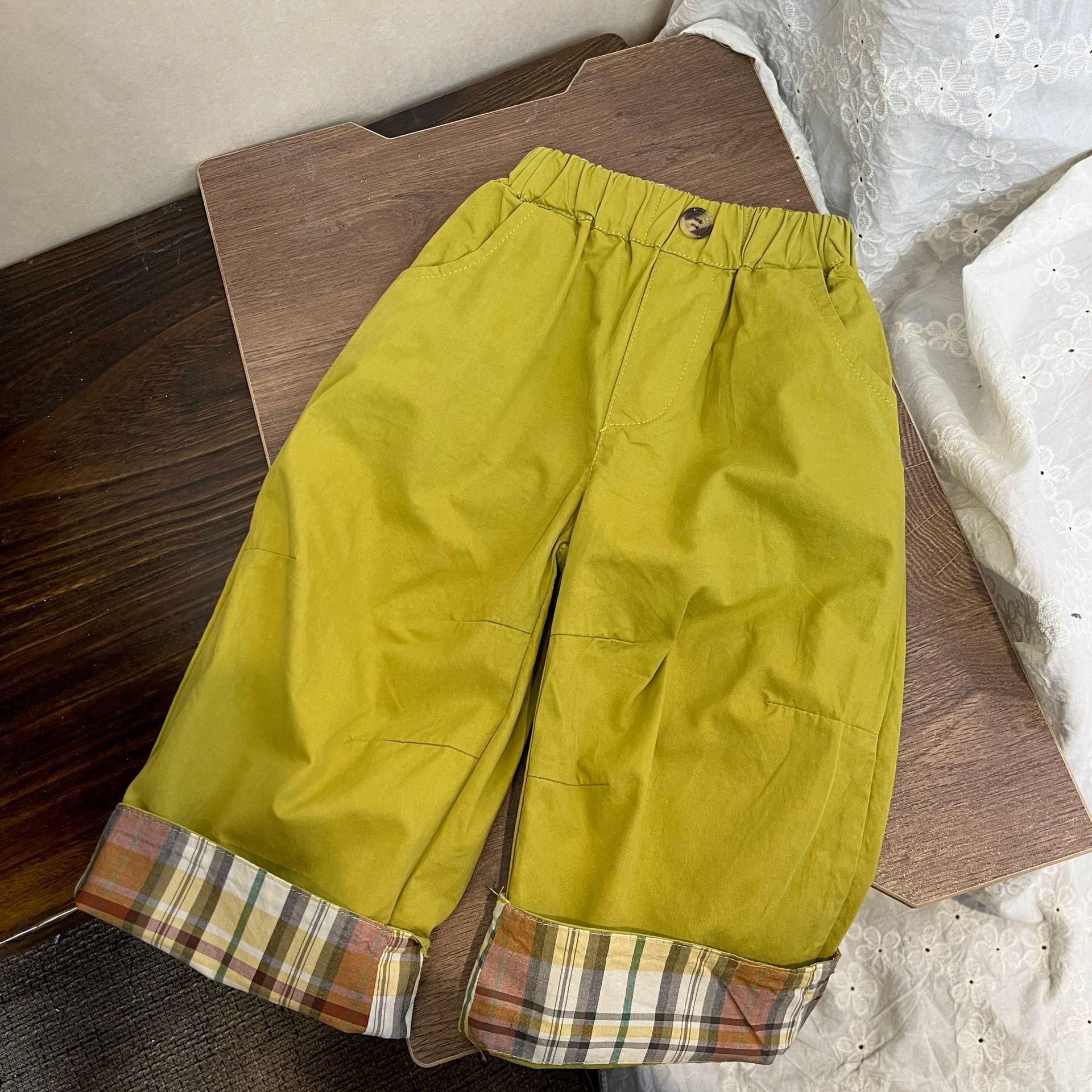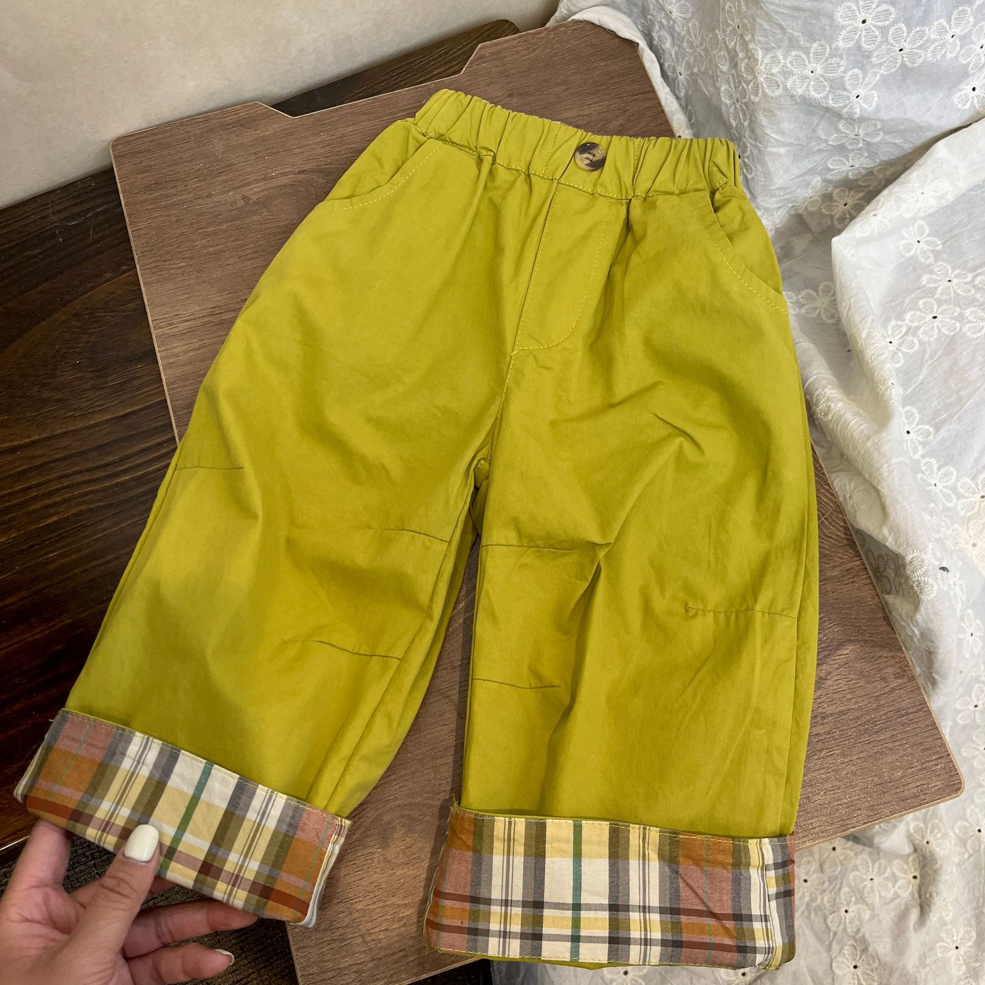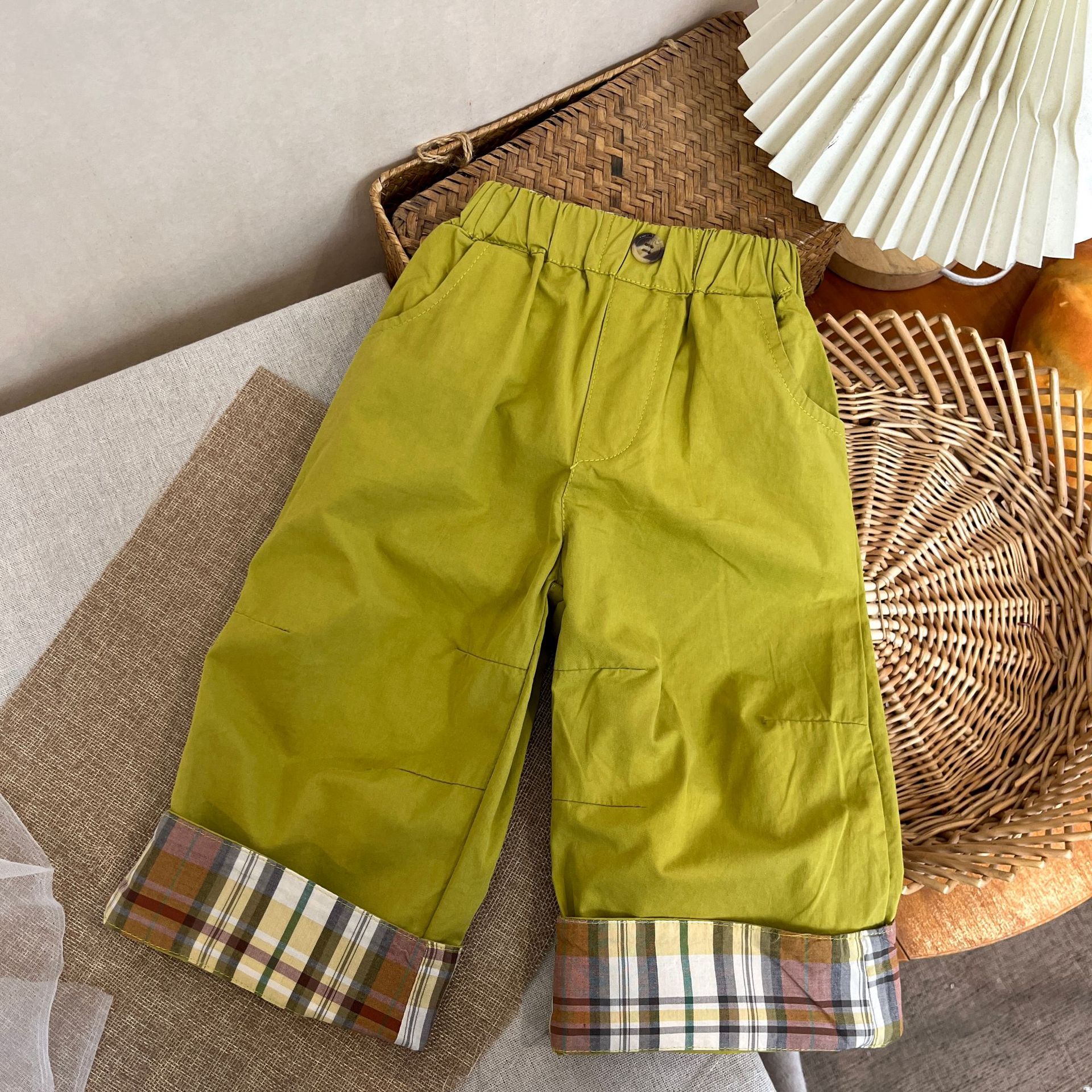 재고 있음~2026년 여아 가을 롤업 체크 캐주얼 팬츠 아기 유치원 스타일리쉬 긴바지 아동 바지 트렌디