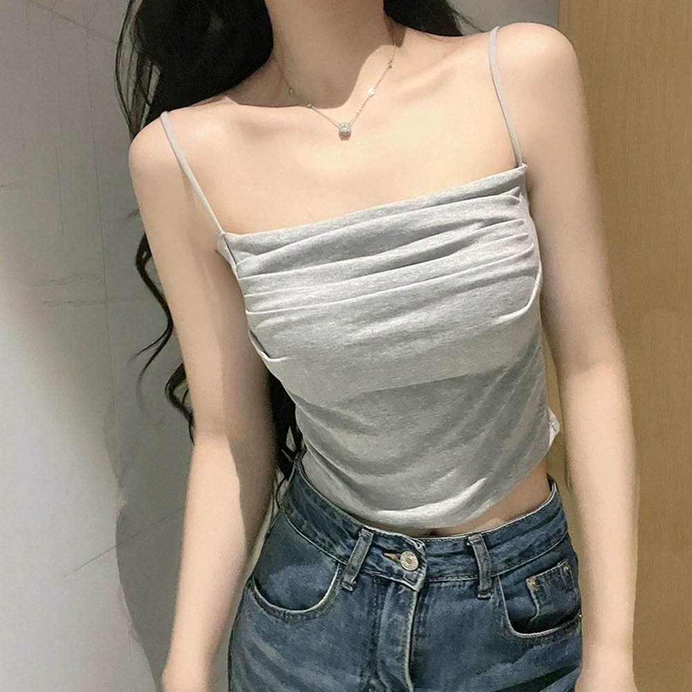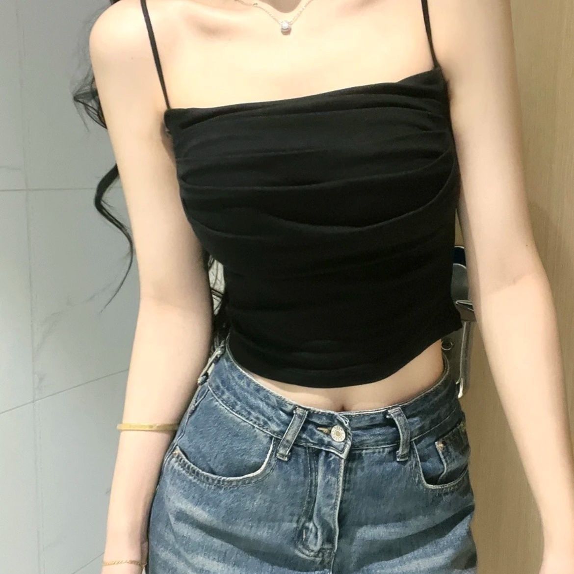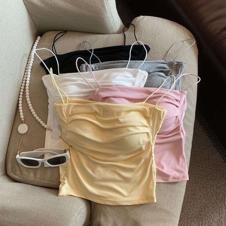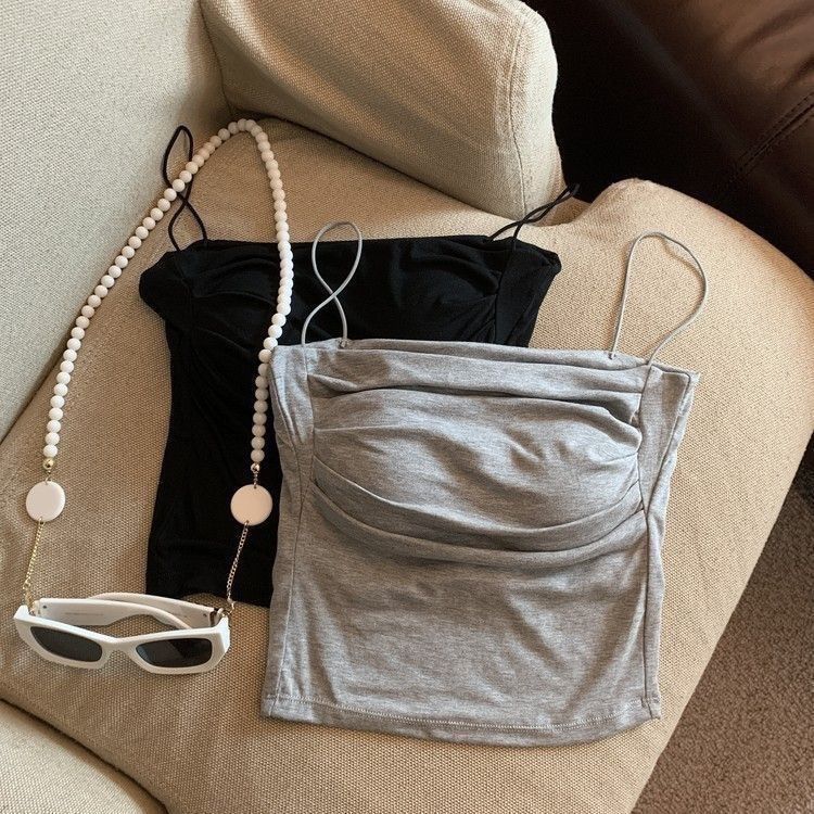 한국 버전의 순수 멜빵 아름다운 등 조끼 고정 컵 가슴을 드러내는 대형 속옷 주름 달린 하단형 짧은 튜브 탑스토어 가기