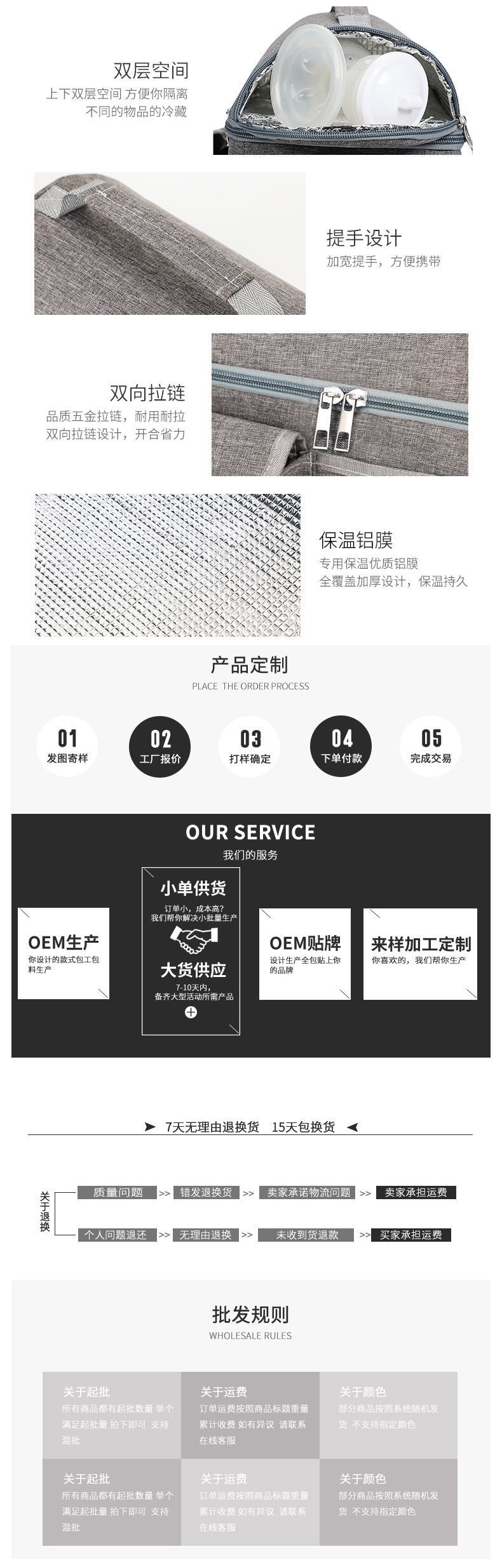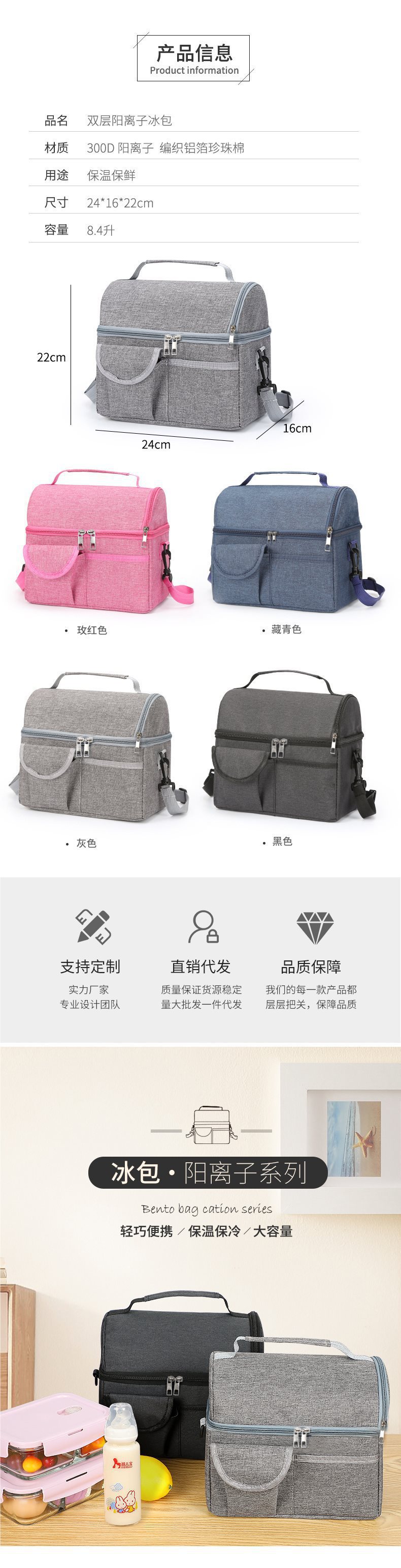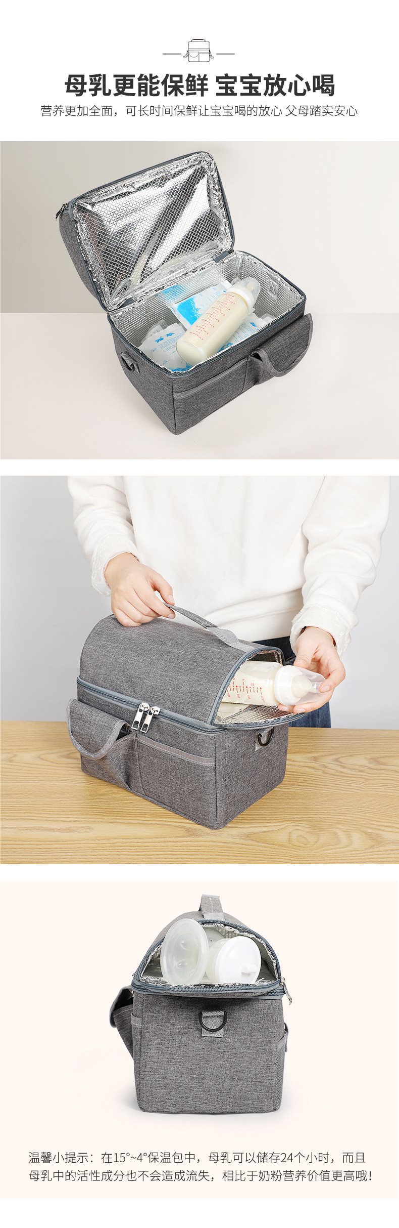 방수 옥스포드 천 유방 보존 가방 대형 더블 레이어 알루미늄 호일 백 우유 가방 휴대용 절연 도시락 가방스토어 가기