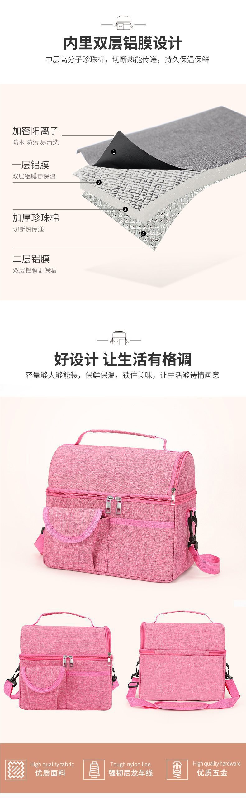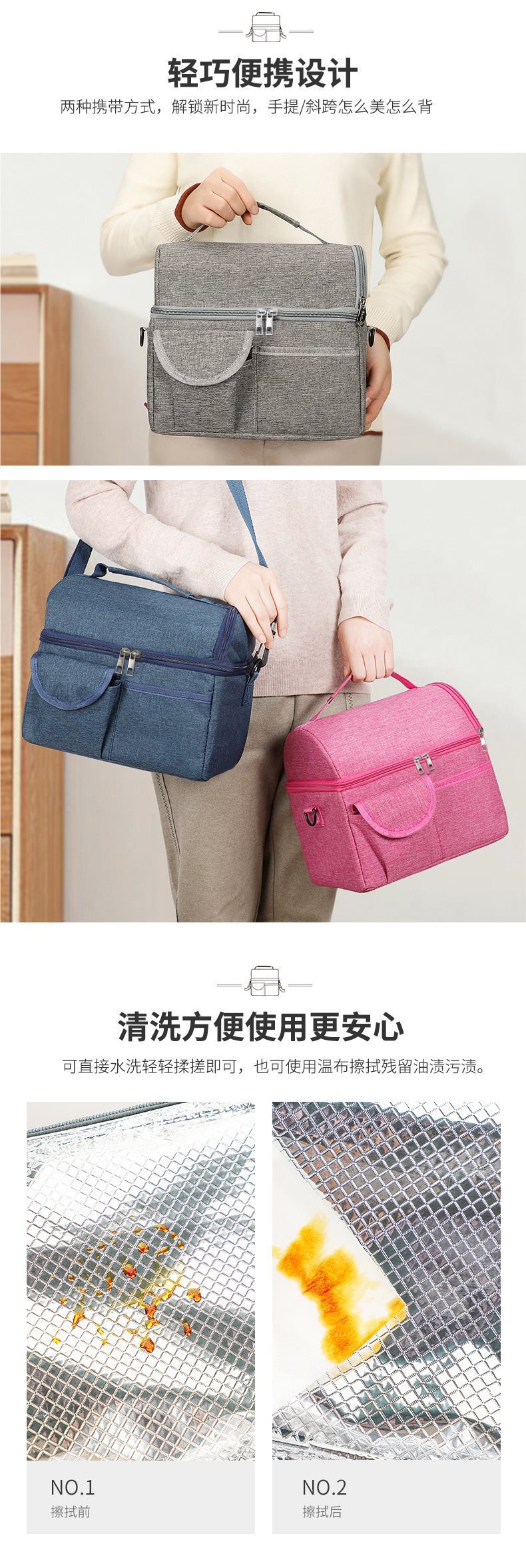 방수 옥스포드 천 유방 보존 가방 대형 더블 레이어 알루미늄 호일 백 우유 가방 휴대용 절연 도시락 가방