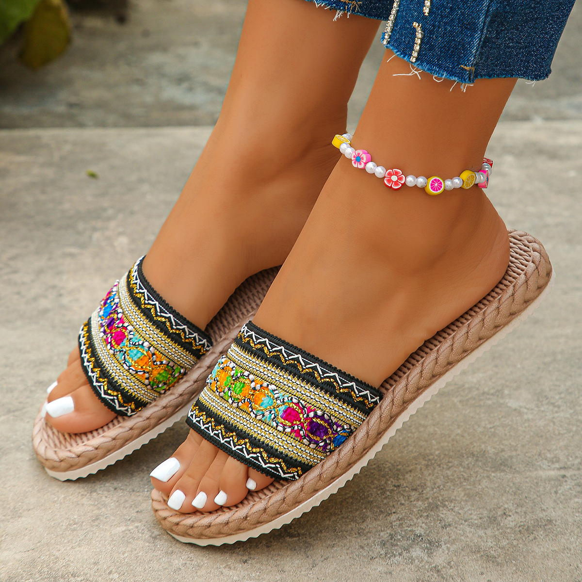 2025 년 여름 국경 두꺼운 단독 대형 신발 민족 스타일 캐주얼 플랫 샌들과 슬리퍼 대마 로프 바닥 오픈 발가락 슬리퍼스토어 가기