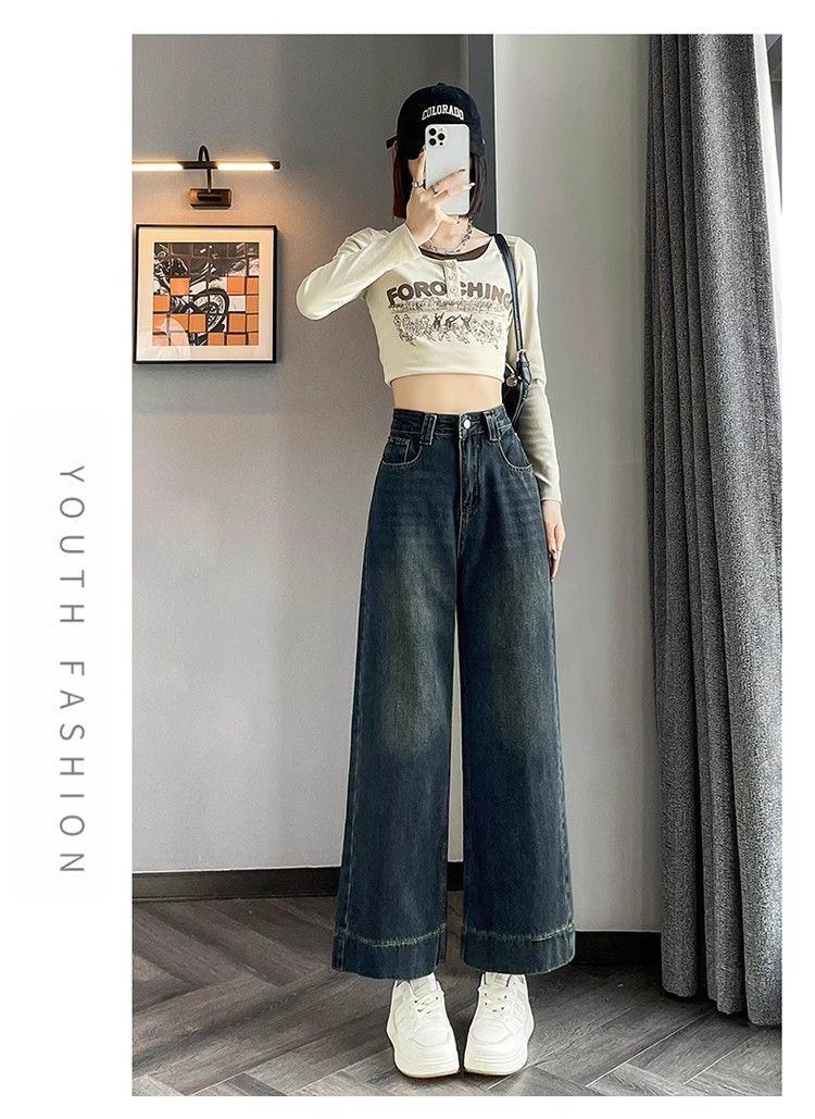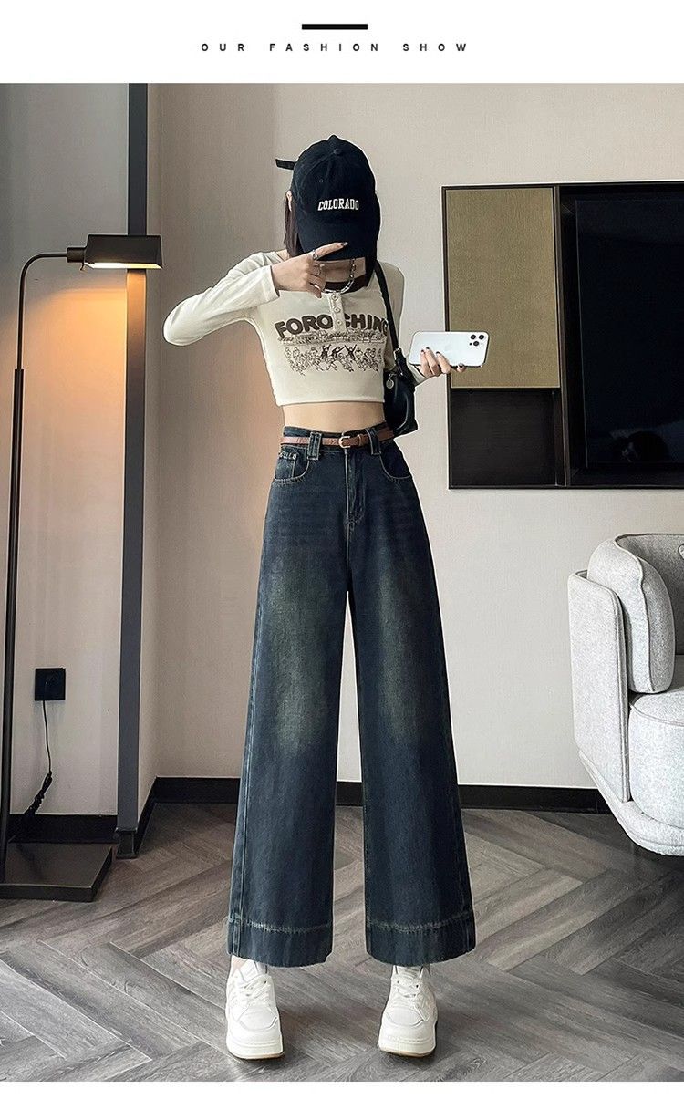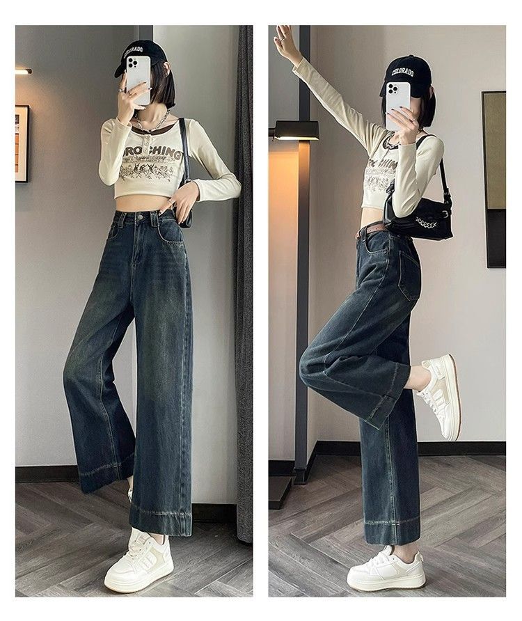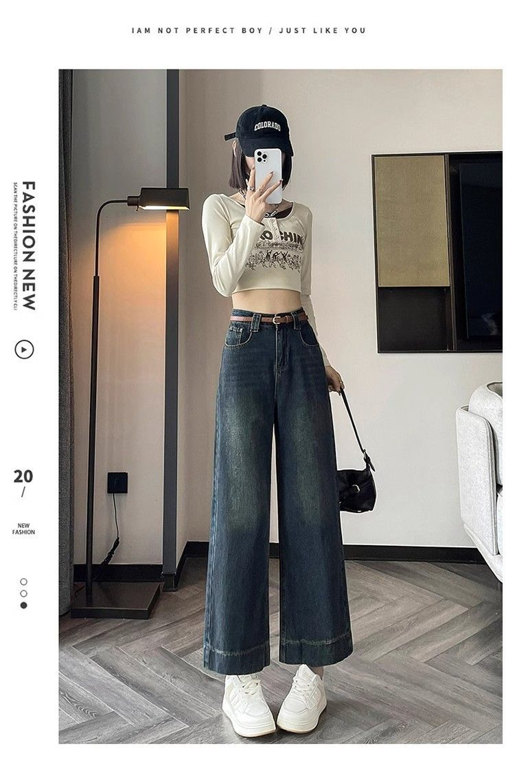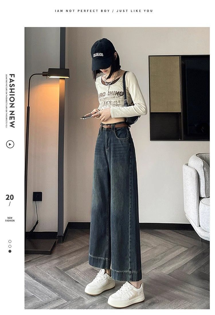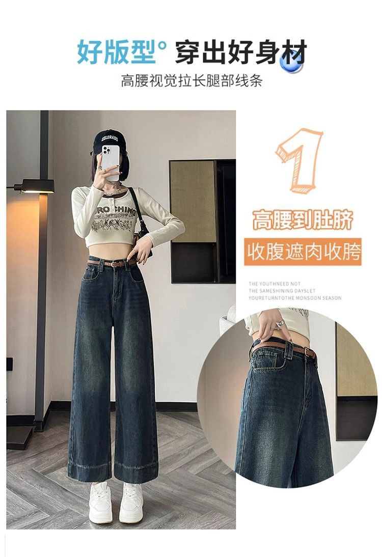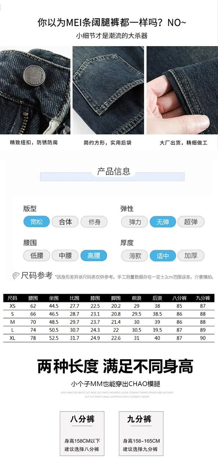 작은 8 점 와이드 레그 청바지 여성의 봄과 여름 새로운 높은 허리 느슨한 키가 큰 슬림 핏 자른 스트레이트 바지스토어 가기