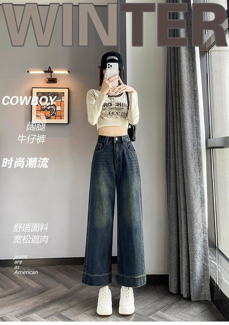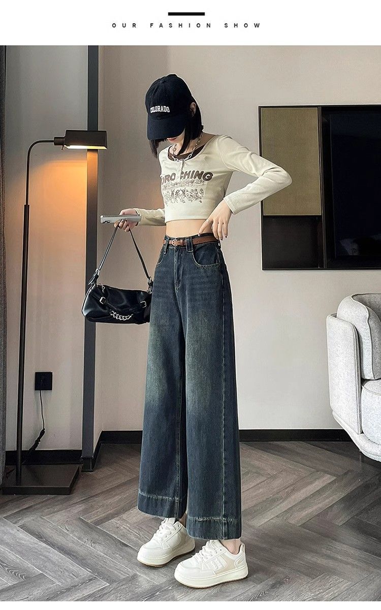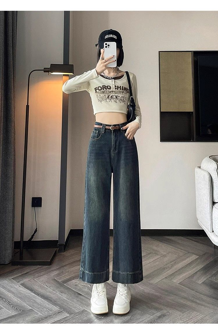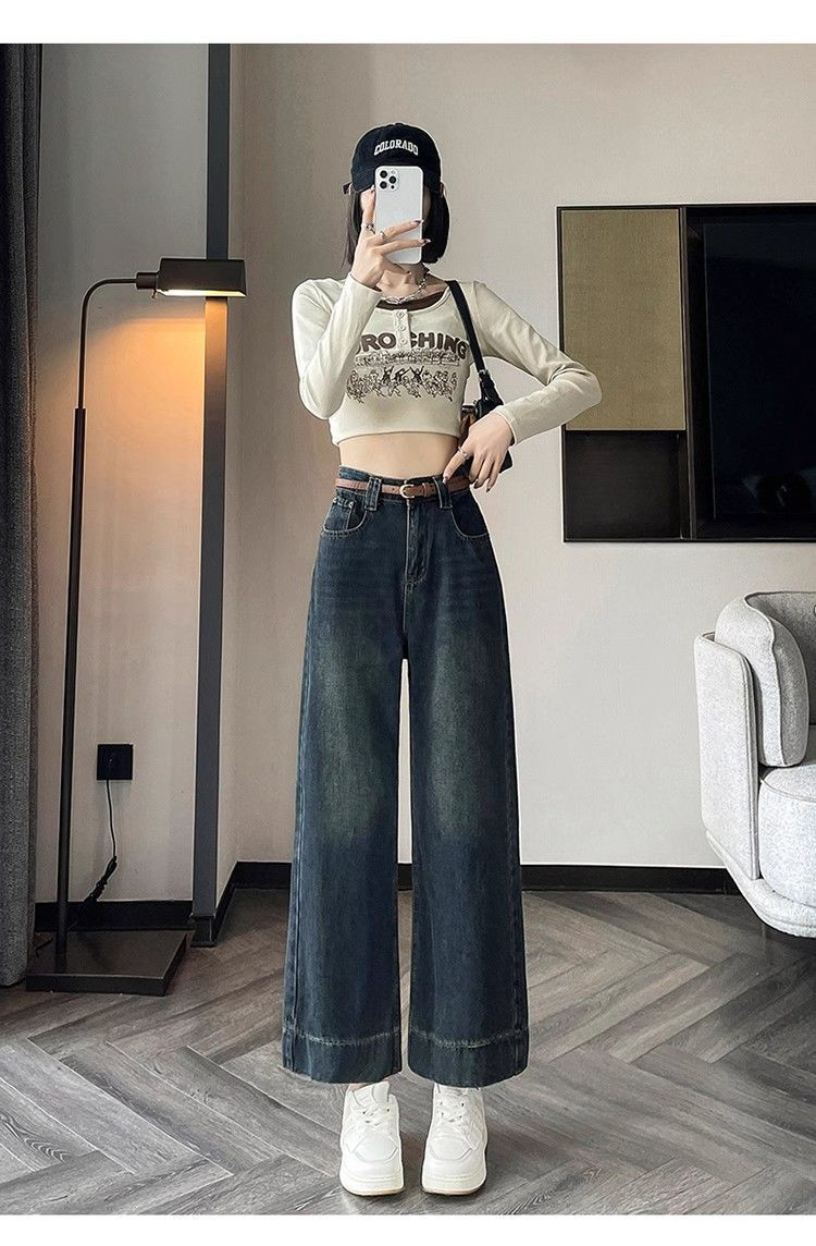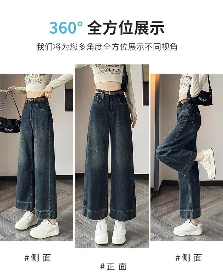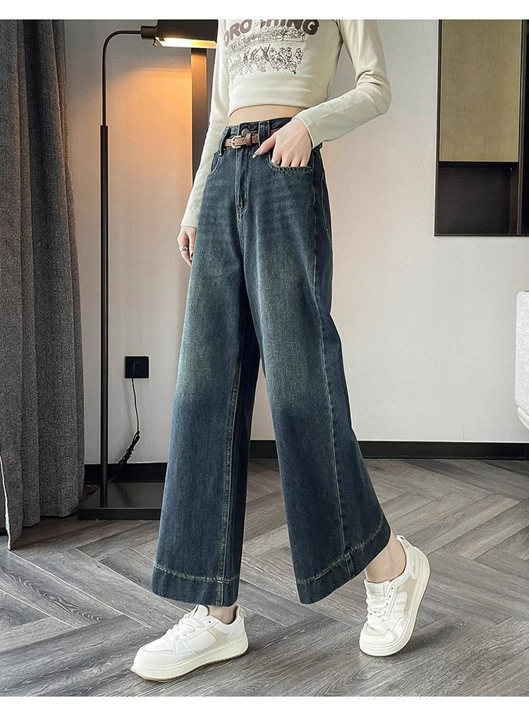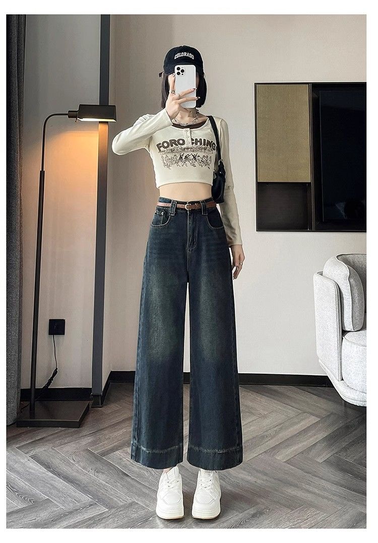작은 8 점 와이드 레그 청바지 여성의 봄과 여름 새로운 높은 허리 느슨한 키가 큰 슬림 핏 자른 스트레이트 바지스토어 가기