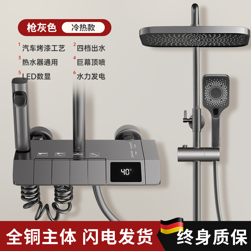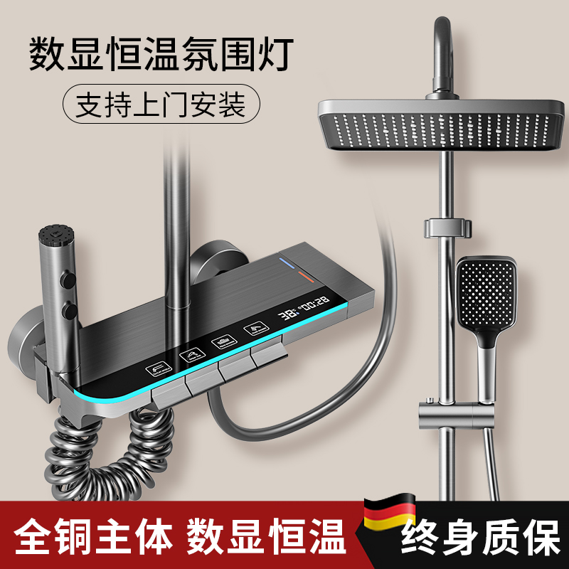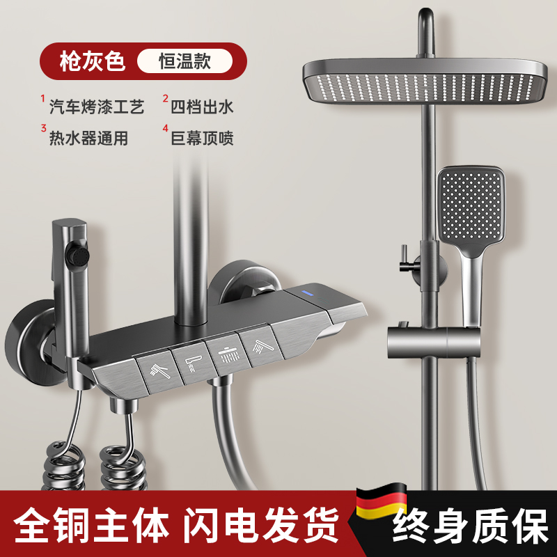 정품 샤워 샤워 세트 건 그레이 모든 구리 샤워 가구 일정한 온도 압력 샤워 헤드 욕실 비스토어 가기